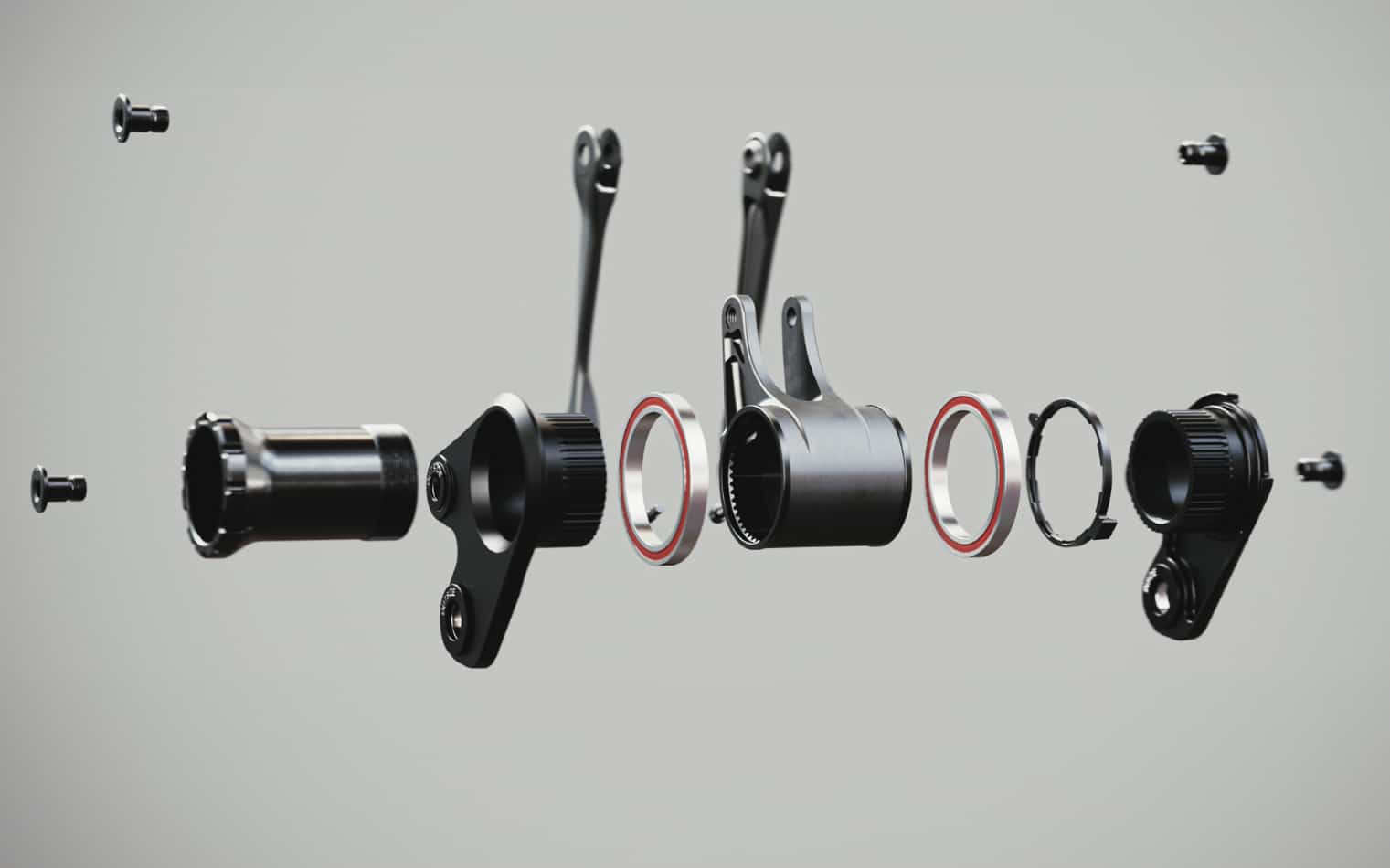 Si l’architecture 6 bar linkage se répand de plus en plus, force est de constater qu’elle n’est pas la plus courante jusqu’à présent. On se permettra donc de rappeler que celle-ci correspond grosso modo à un 4 bar linkage sur lequel a été rajouté un basculeur entre les bases et le triangle avant.
