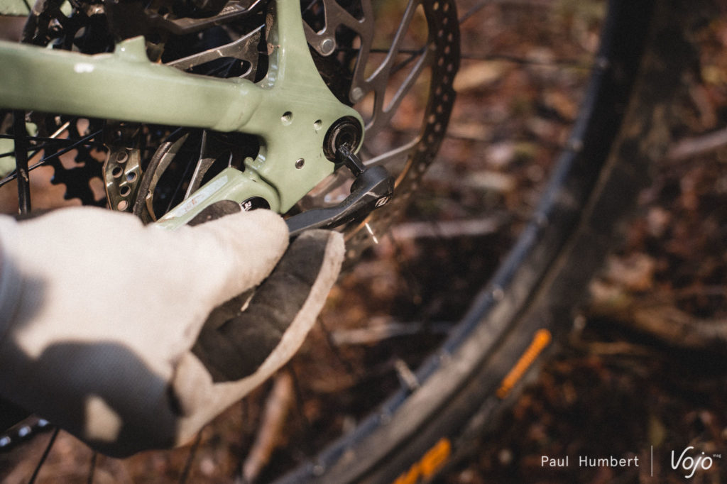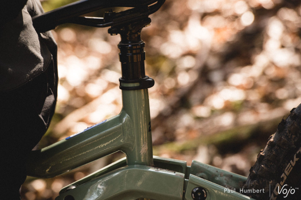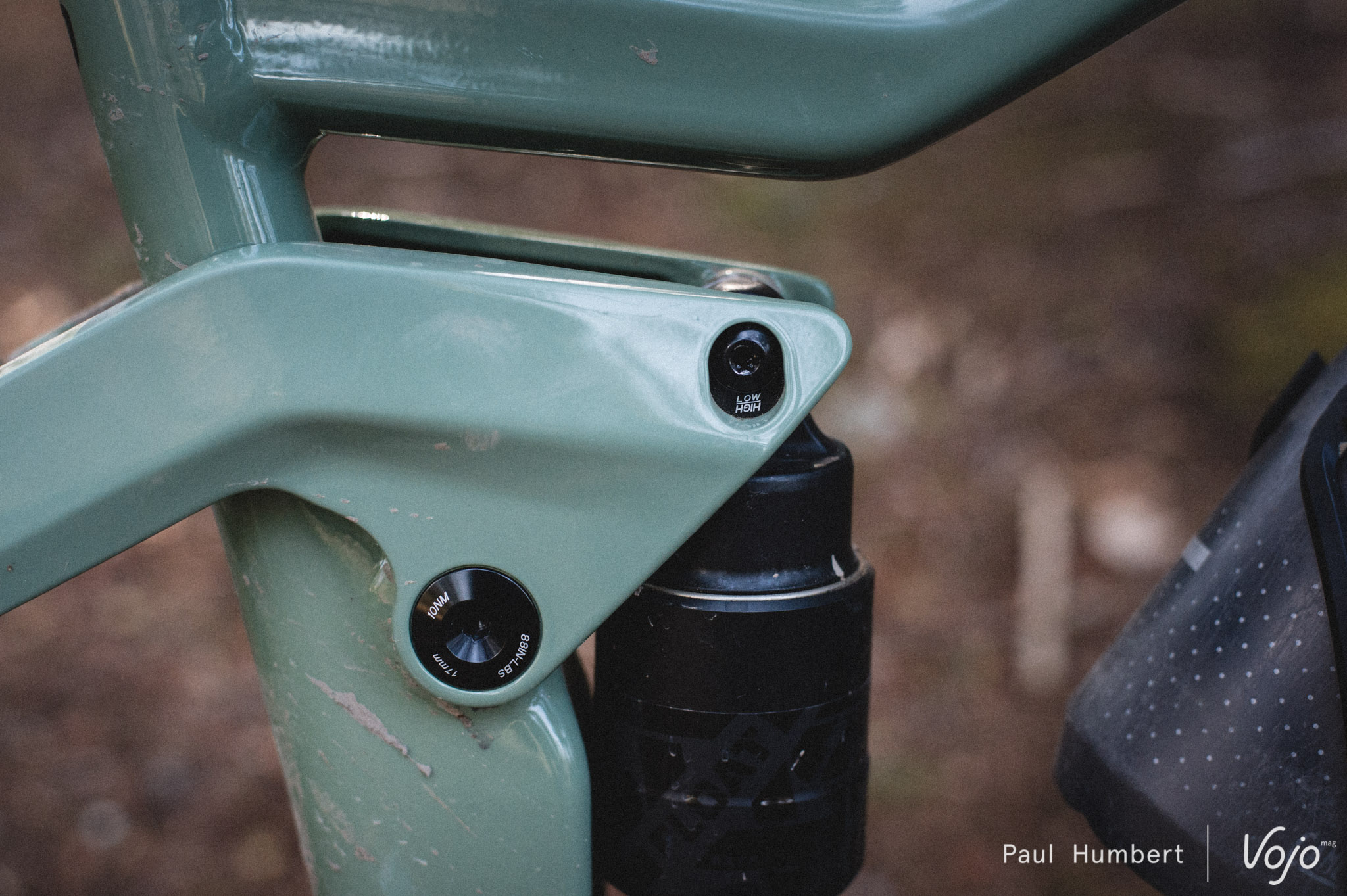 Comme le Ransom classique, il est vendu en 29″ mais reste compatible avec des roues en 27,5″ grâce à un flipchip entre la biellette et l’amortisseur. Retourner cette petite pièce permet en fait de remonte le boîtier de pédalier de quelques millimètres, de façon à le laisser à une hauteur « normale » malgré le passage sur des roues plus petites. Contrairement à d’autres marques qui proposent des systèmes similaires pour jouer sur la géométrie sans changer de taille de roue, Scott conseille de ne pas y toucher si on reste en 29″ et de la retourner uniquement si on monte du 27,5″.