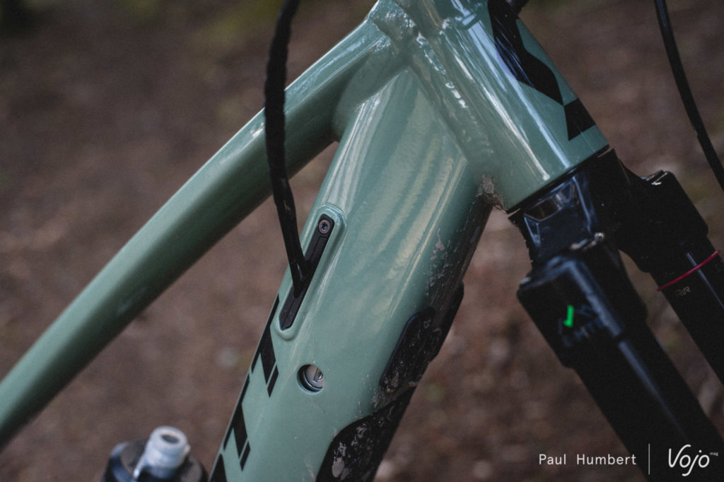 Moteur haut de gamme et batterie haut de gamme, puisque c’est une PowerTube 625 Wh qui prend place dans le tube diagonal. Elle est bien sûr amovible (sécurisée avec une clé) mais on peut aussi la recharger directement sur le vélo grâce à une prise située sur le haut du tube diagonal.