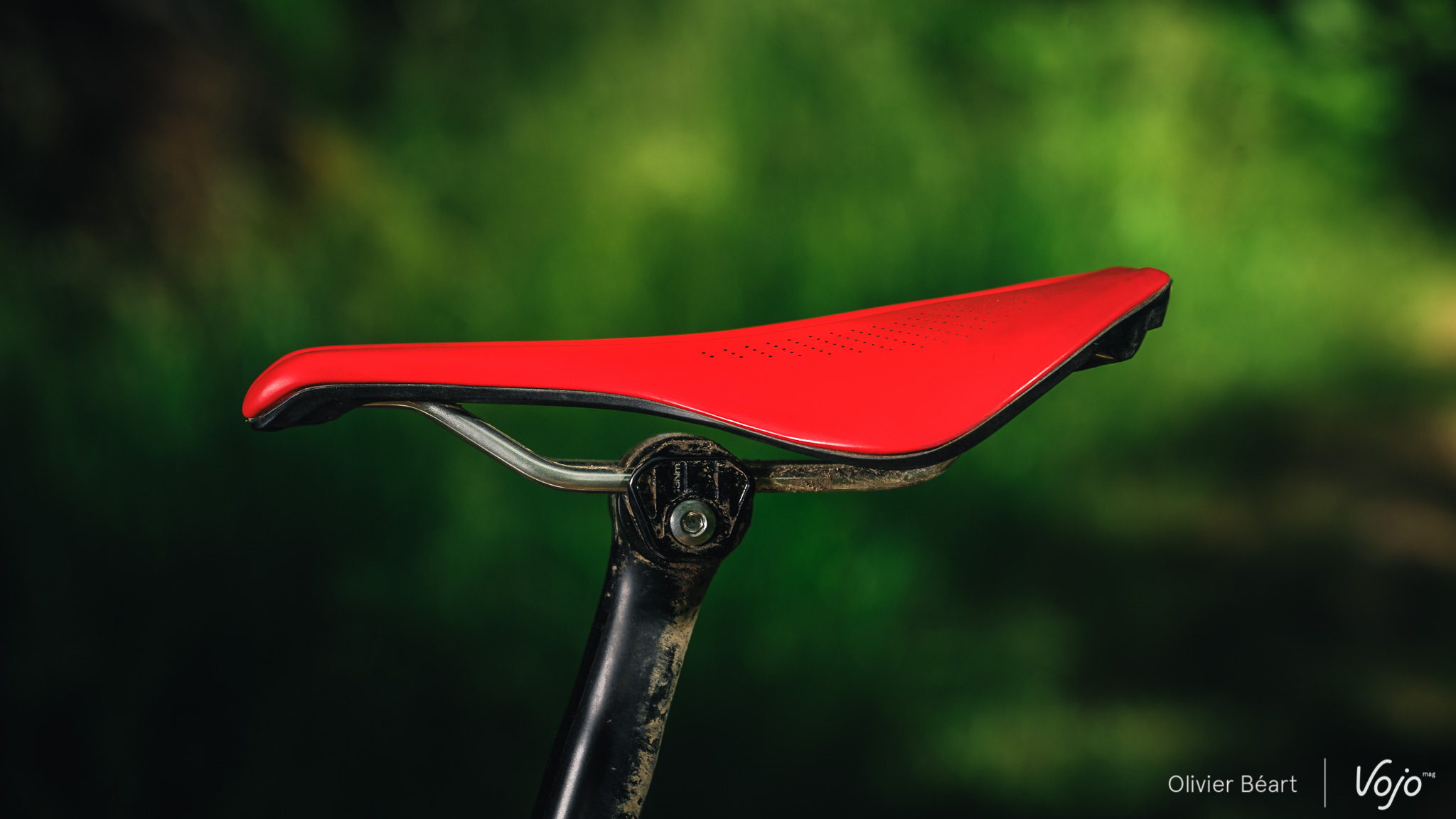 Pour un usage sur de longues distances, la selle Specialized Power n’a pas son pareil et c’est un véritable coup de foudre. On ne s’est toujours pas vraiment habitués à son physique, mais elle n’est pas prête de quitter notre monture ! Elle s’est aussi montrée particulièrement résistante et elle semble encore presque neuve malgré les conditions climatiques parfois sévères dans lesquelles le test s’est déroulé (regardez les images du test XTR Di2 pour vous en convaincre). Des défauts, nous ne lui en avons pas vraiment trouvé mais par contre, nous avons clairement vu ses limites et sa largeur importante, gênante si les passages très techniques se répètent, la rendra inadaptée au XC pur sur des circuits exigeants façon World Cup, ainsi qu’à l’enduro. Un biker averti…