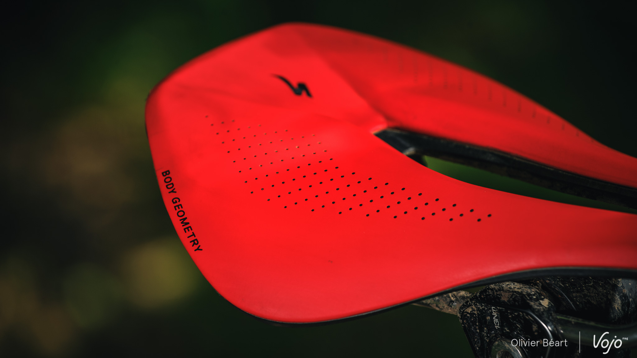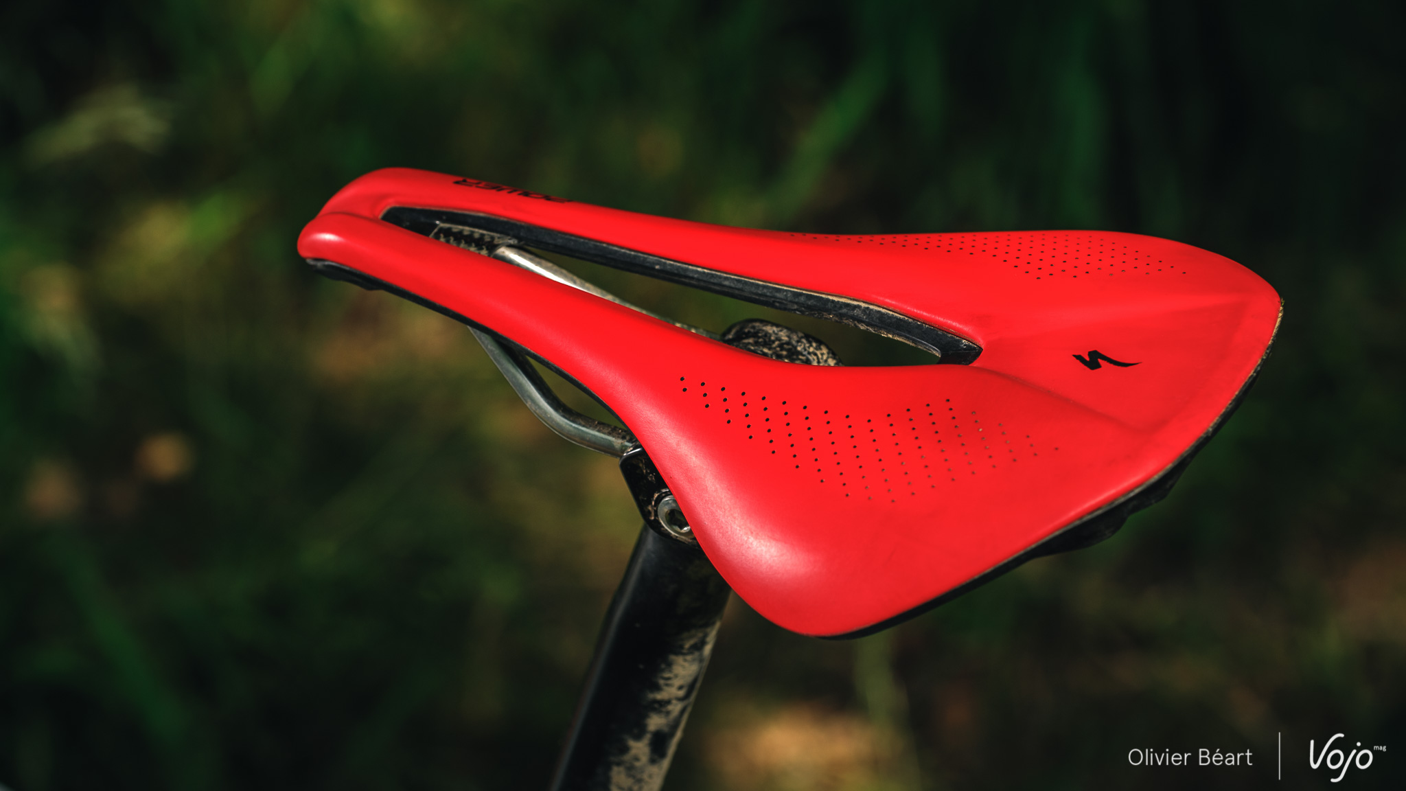Dès le premier contact, elle se montre très accueillante et flatteuse pour l’arrière-train malgré sa coque carbone et son rembourrage fin qui s’adressent à des bikers au fessier bien rodé même si elle filtre bien les vibrations. Mais la selle Specialized Power offre un vrai confort de par sa forme et elle parvient à confirmer sur la durée, ce qui est son gros point fort.