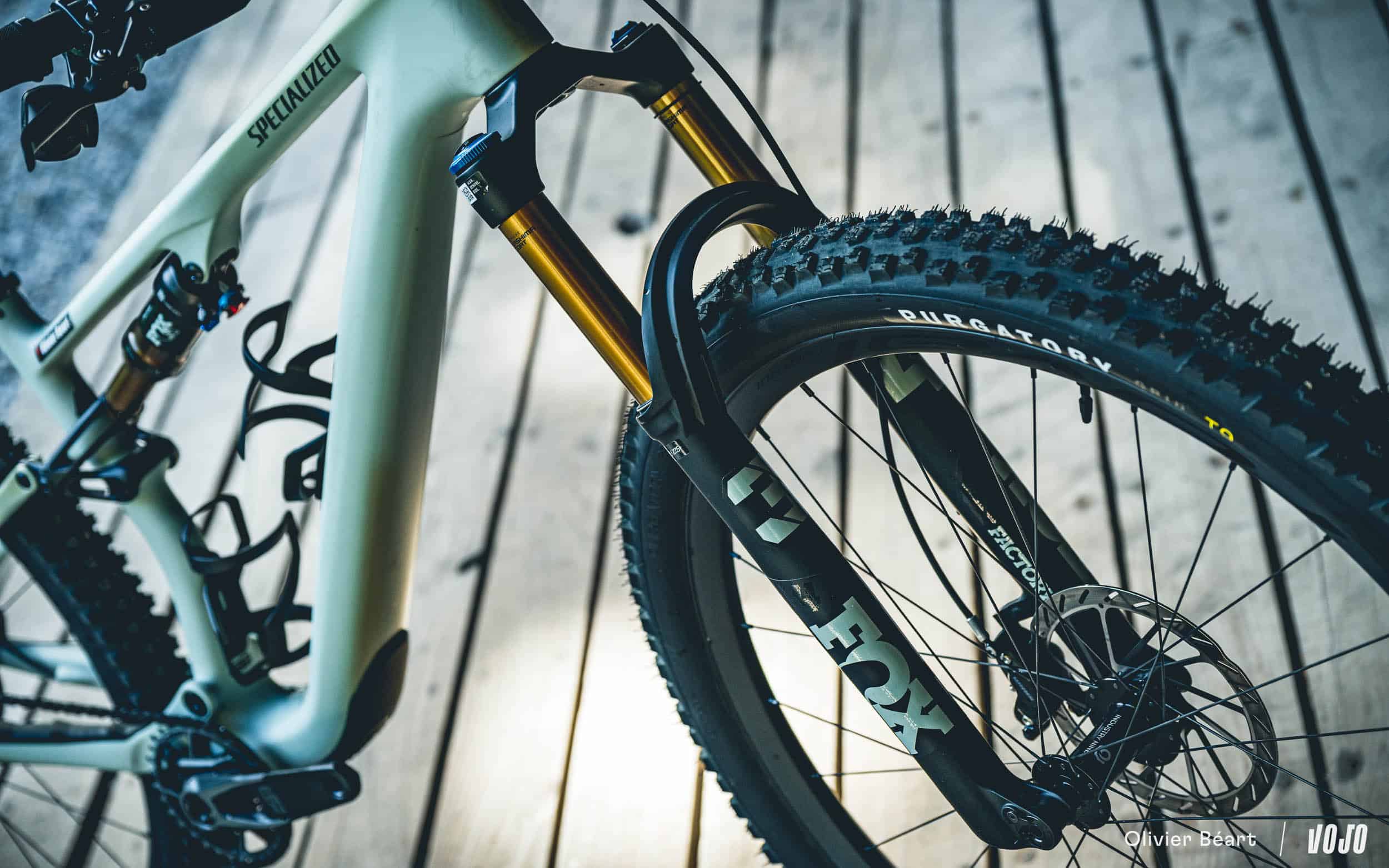 Tant qu’on parle de suspensions, elles jouent aussi un rôle au niveau du rendement perçu sur le Specialized Epic 8 Evo. A l’avant, la fourche Fox Factory Grip 2 dispose d’un réglage des compressions basse et haute vitesse très raffiné, mais pas de blocage. A nos yeux, ce n’est pas vraiment un souci tant le fonctionnement de la Fox F34 Grip2 est convaincant. Par contre, à l’arrière, on est sur un amortisseur on/off qui ne dispose pas de position intermédiaire. Clairement, nous avons trouvé cela dommage. On a l’impression que ce choix a été fait pour des raisons « politiques » afin de bien différencier l’Epic 8 Evo de l’Epic 8 destiné au XC, mais cela pénalise clairement l’expérience sur le terrain car on se retrouve régulièrement dans des portions de pédalage où la position ouverte semble trop souple et ajoute à l’impression de manque de rendement de l’Epic 8 Evo, alors que la position ouverte est trop ferme, ce qui pénalise le confort et le grip de la roue arrière dans les montées plus techniques.