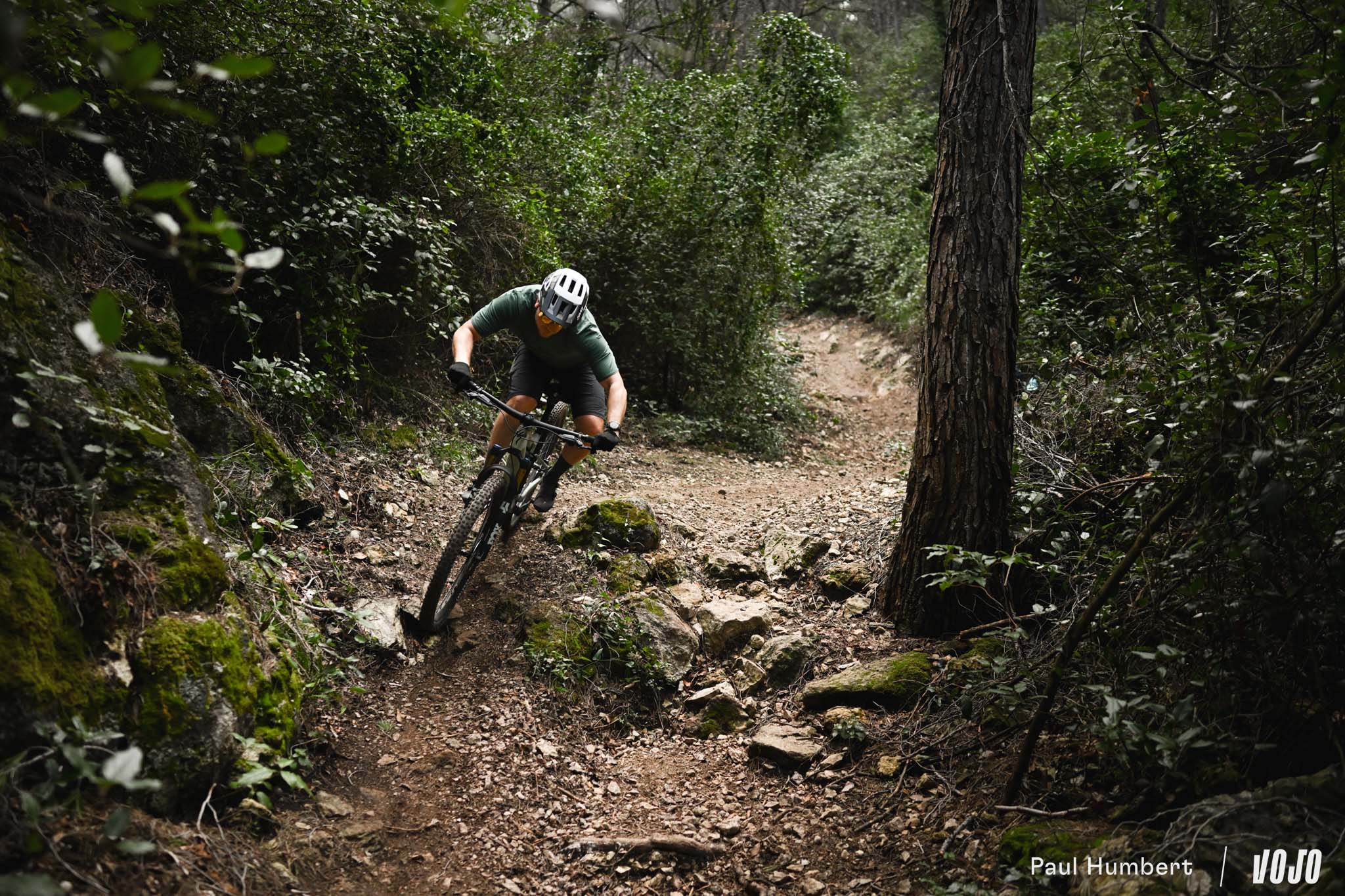 Par la suite, de retour en Europe, nous avons eu l’occasion d’essayer plus longuement le Specialized Epic 8 Evo. Sur nos terrains habituels en Belgique, nos testeurs ont aussi trouvé que le rendement le plaçait davantage parmi les très bons élèves de la catégorie trail/all-mountain, que dans la moyenne des XC contemporains. Et tous ont aussi regretté l’absence de position intermédiaire pour les grimpettes techniques. Par contre, quand on l’emmène sur des descentes naturelles, bien technique et pas trop longues comme celles des trail centers wallons, le vélo commence à se révéler.