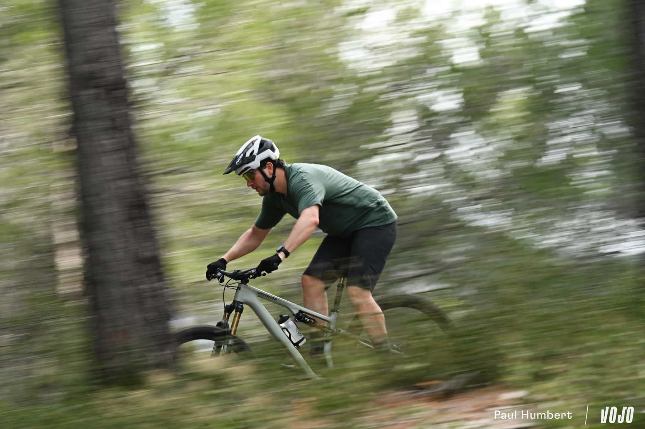 Clairement, l’Epic 8 Evo pédale bien et donne toujours une belle impression de légèreté, mais son rendement n’a rien à voir avec celui de l’Epic 8 S-Works. Le poids des pneus joue beaucoup, tout comme le poids global de l’engin (qui accuse plus d’1,5 kg de différence tout de même) et la position moins orientée vers l’attaque cause aussi ce ressenti. Assez vite, on se dit d’ailleurs qu’on va davantage le comparer au Stumpjumper qu’à l’Epic 8 avec lequel il partage pourtant le châssis. Clairement, avec ses équipements bodybuildés et ses suspensions différentes, c’est un tout autre vélo qui va jouer dans la cour des vélos de trail/all-mountain plus que sur le segment XC engagé et down-country comme son prédécesseur.