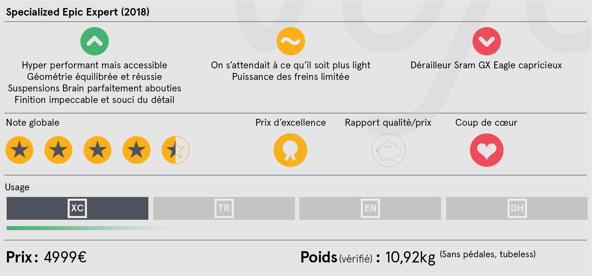 Le modèle que nous avons testé ici est le Specialized Epic Expert, situé en milieu de gamme.