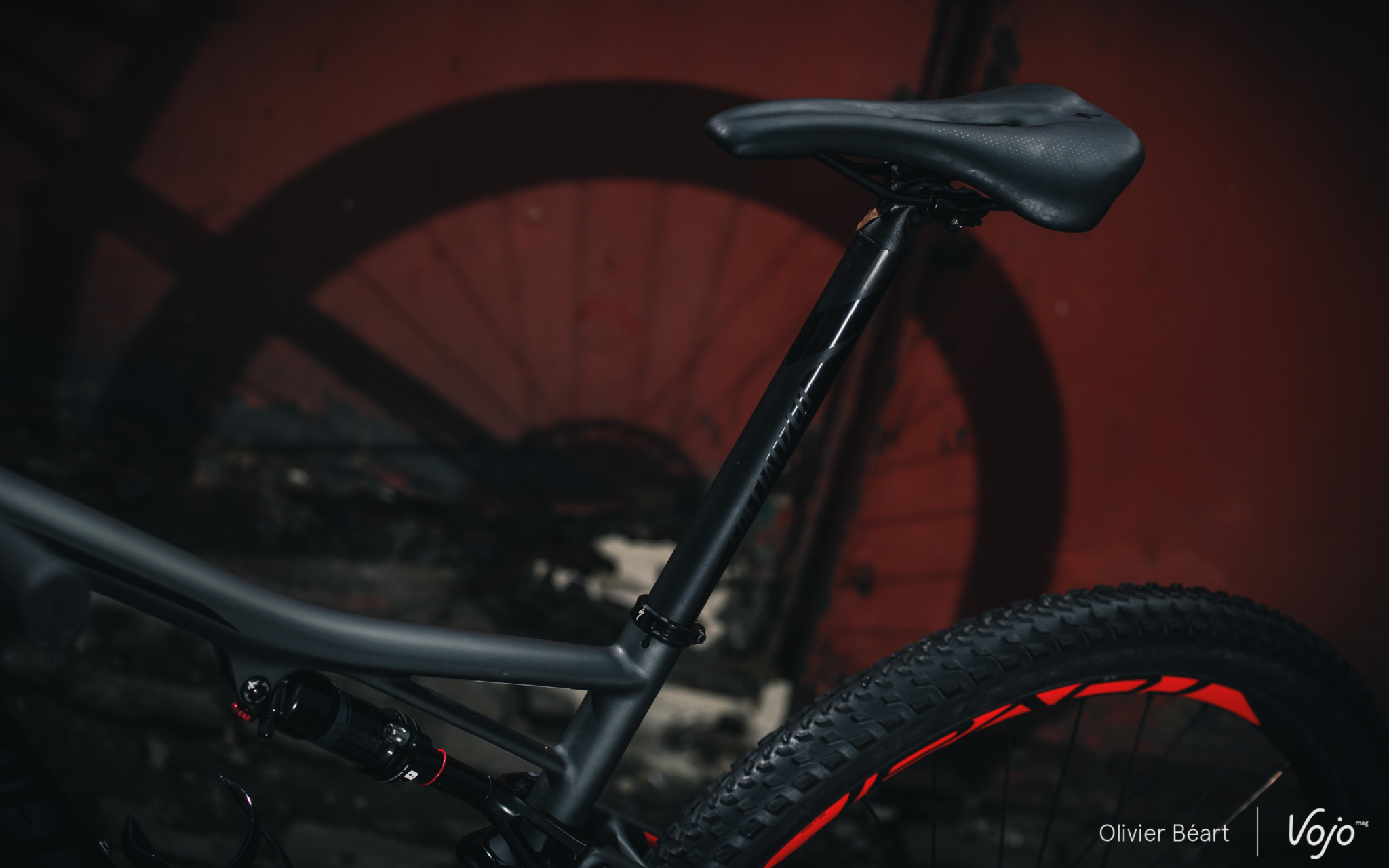 Après plusieurs mois passés à son guidon, il est apparu que le cadre lui-même est une excellente base qui ne montre pas de faiblesse et que le montage d’origine est globalement cohérent et fiable (à une ou deux exceptions près, voir plus bas). Mais plusieurs points peuvent-être améliorés au niveau de l’équipement pour mieux profiter de ce nouveau Specialized Epic. Outre le disque avant dont nous venons de parler, le tout premier investissement que nous vous conseillons de faire, c’est une tige de selle télescopique qui va permettre d’être plus à l’aise en descente et de mieux faire travailler la suspension en portant plus le poids du corps sur l’arrière.