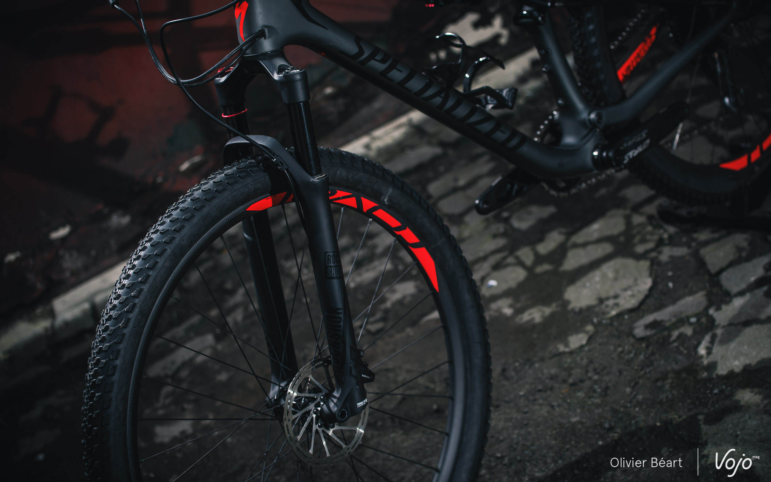 Même si les changements n’ont rien d’extrême et ne déconcerteront pas ceux qui connaissaient la précédente génération de l’Epic, l’idée est néanmoins de rendre le nouvel Epic moins rétif dans les passages techniques de plus en plus engagés des tracés XC contemporains, et d’augmenter la confiance sans rien perdre à l’agilité du vélo. Pour cela, si le vélo s’allonge un peu et si l’angle de direction est un peu plus couché, Specialized a joué avec le déport de fourche (offset) pour le faire passer de 51 à 42mm. Une tendance qu’on va rencontrer de plus en plus souvent (voir l’Orbea Rallon R5 en enduro ou encore le Transition Sentinel) et qui mérite bien quelques mots d’explication.