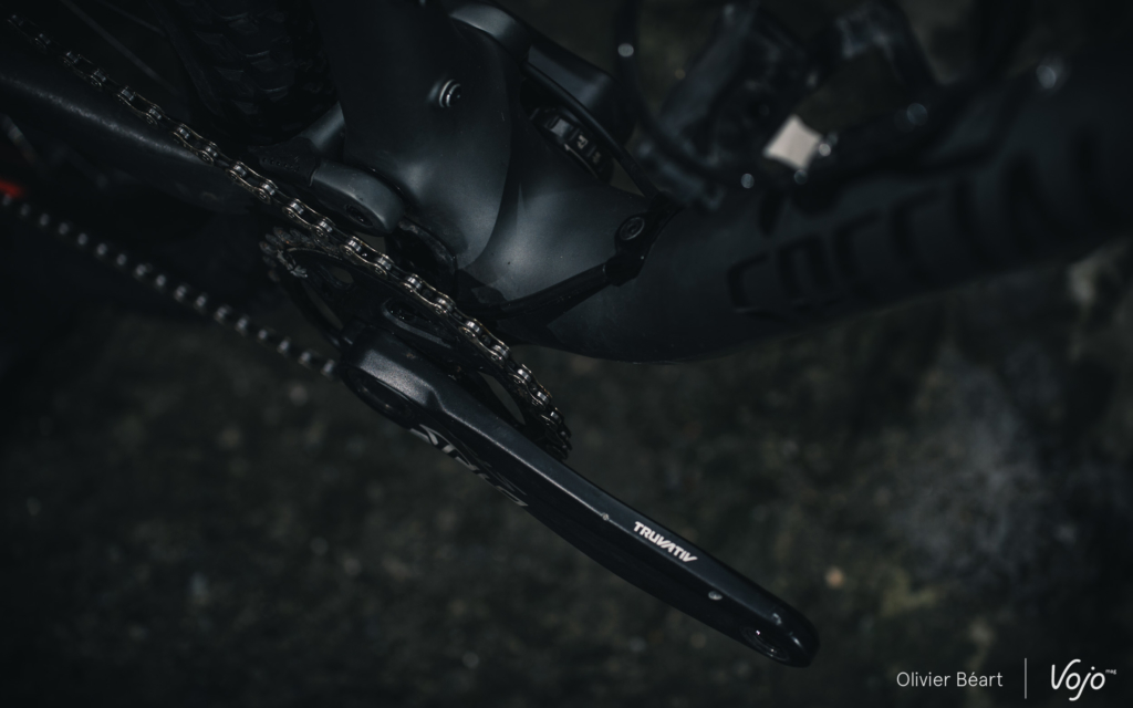 Les accessoires, comme le poste de pilotage et la tige de selle, restent par contre en aluminium, et il y a moyen de réaliser d’importants gains de poids à ce niveau. Sur la selle aussi, on peut gagner quelques grammes, mais son confort et son ergonomie sont vraiment séduisants et on sent que Specialized est un expert en la matière. On réfléchira donc à deux fois avant de la changer !