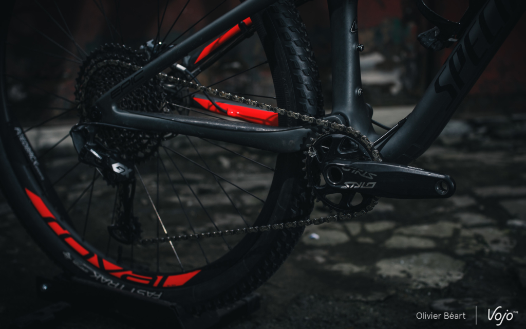 Par contre, on a cherché un peu plus sur la fourche et il est dommage que Specialized livre ses vélos avec un seul volume spacer dans la chambre d’air de la SID, alors que deux permettent de dégonfler un peu et d’avoir plus d’onctuosité sur les petits chocs. Une fois cette modification faite, on se rend compte que, à l’avant comme à l’arrière, le Brain se fait presque totalement oublier. La précédente génération était déjà très au point, et on ne peut pas parler d’évolution marquante, mais Specialized a encore une fois réussi à raffiner son système, et le résultat final est plus que probant !