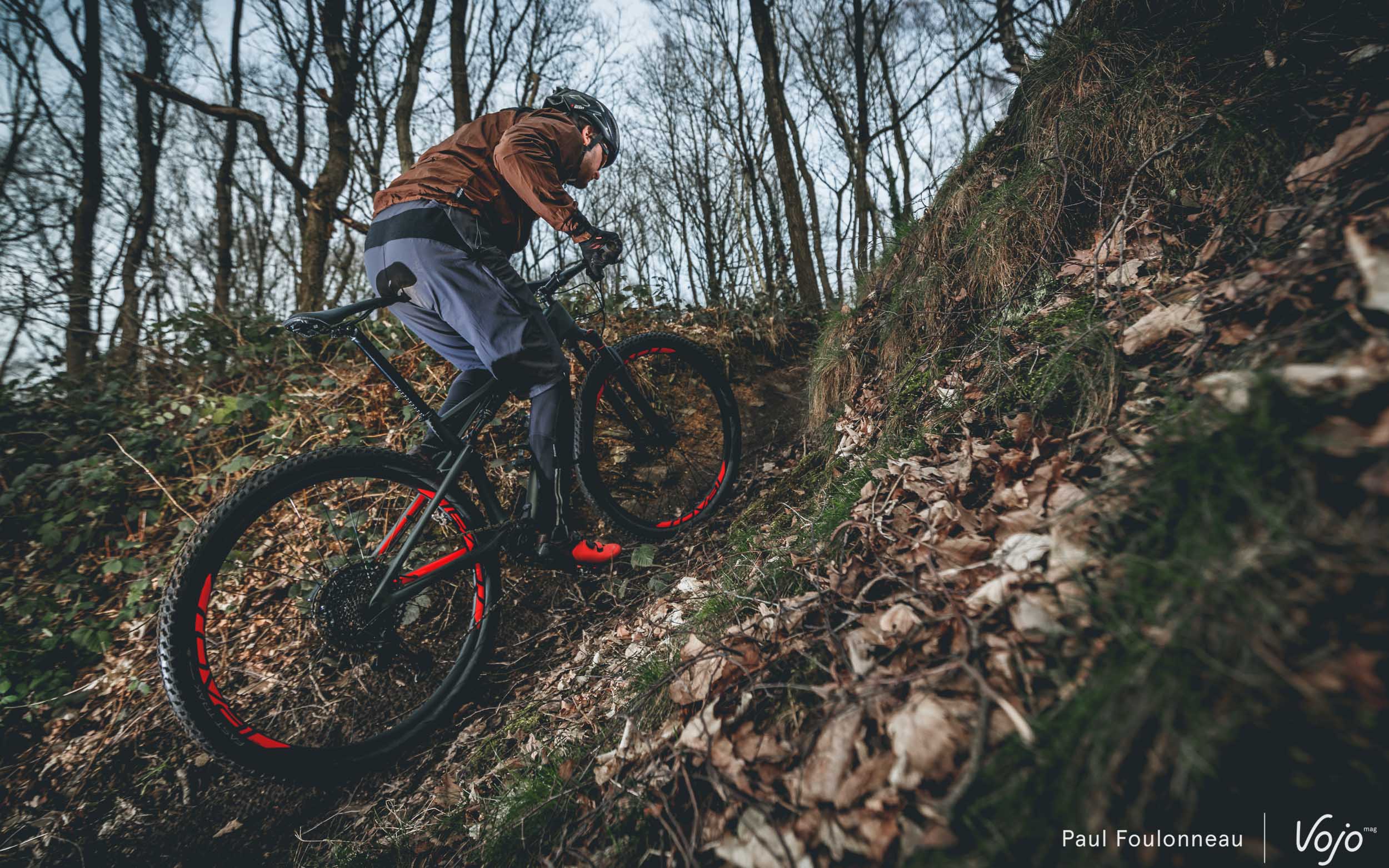 Tout cela a l’air miraculeux, au point qu’on se demande pourquoi on ne l’a pas fait plus tôt. La réponse est liée à l’expérience acquise avec les années sur le 29″ qui, depuis ses débuts, semblait condamné à avoir un angle de direction très droit et un grand déport de fourche pour compenser l’effet gyroscopique plus important des grandes roues par rapport à un 26″. Mais il s’agit en fait plus d’un leurre, donnant des vélos plus vifs et sensibles aux micro-mouvements pour rappeler les petites roues. Cela collait plus aux pratiques d’il y a quelques années, avec des angles de direction de 70 à 72° en 29″. Mais aujourd’hui, avec l’évolution des façons de rouler et des géométries (cadres plus longs, angle avant plus couché, douille plus courte), un déport réduit prend tout son sens. Et c’est pour cela qu’il est probable que cette tendance se répande à l’avenir. Attention toutefois : il s’agit d’un tout, et toucher au déport de fourche sur un vélo non prévu pour est toujours délicat.