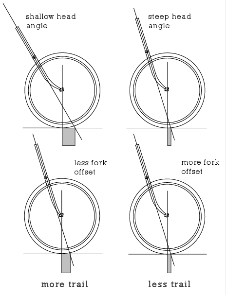 Avec un angle de chasse réduit/plus couché, on augmente la stabilité, mais en réduisant le déport, on évite le sentiment d’effondrement de la roue en virage. On est donc plus stable en virage tout en étant moins sous-vireur, et donc sans perdre en maniabilité du vélo. On a par contre moins de micro-mouvements de la roue avant, sans pour autant avoir une direction lourde.