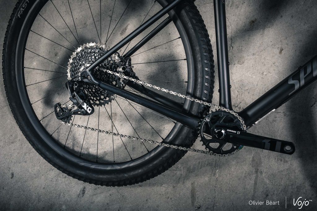 4999€, c’est une coquette somme, mais il faut reconnaître que le modèle Pro World Cup a tout pour justifier son statut de haut de gamme et pour s’aligner au départ de n’importe quelle course… à commencer par le fameux groupe Sram XO1 Eagle 1×12 (dont vous pouvez retrouver notre test complet ici en version XX1).