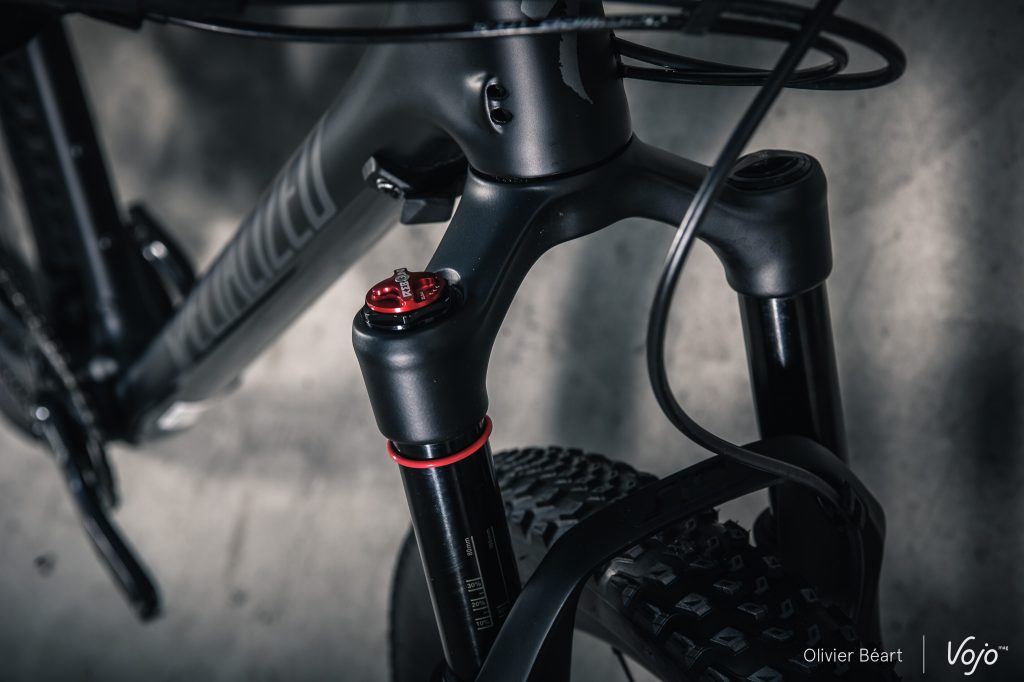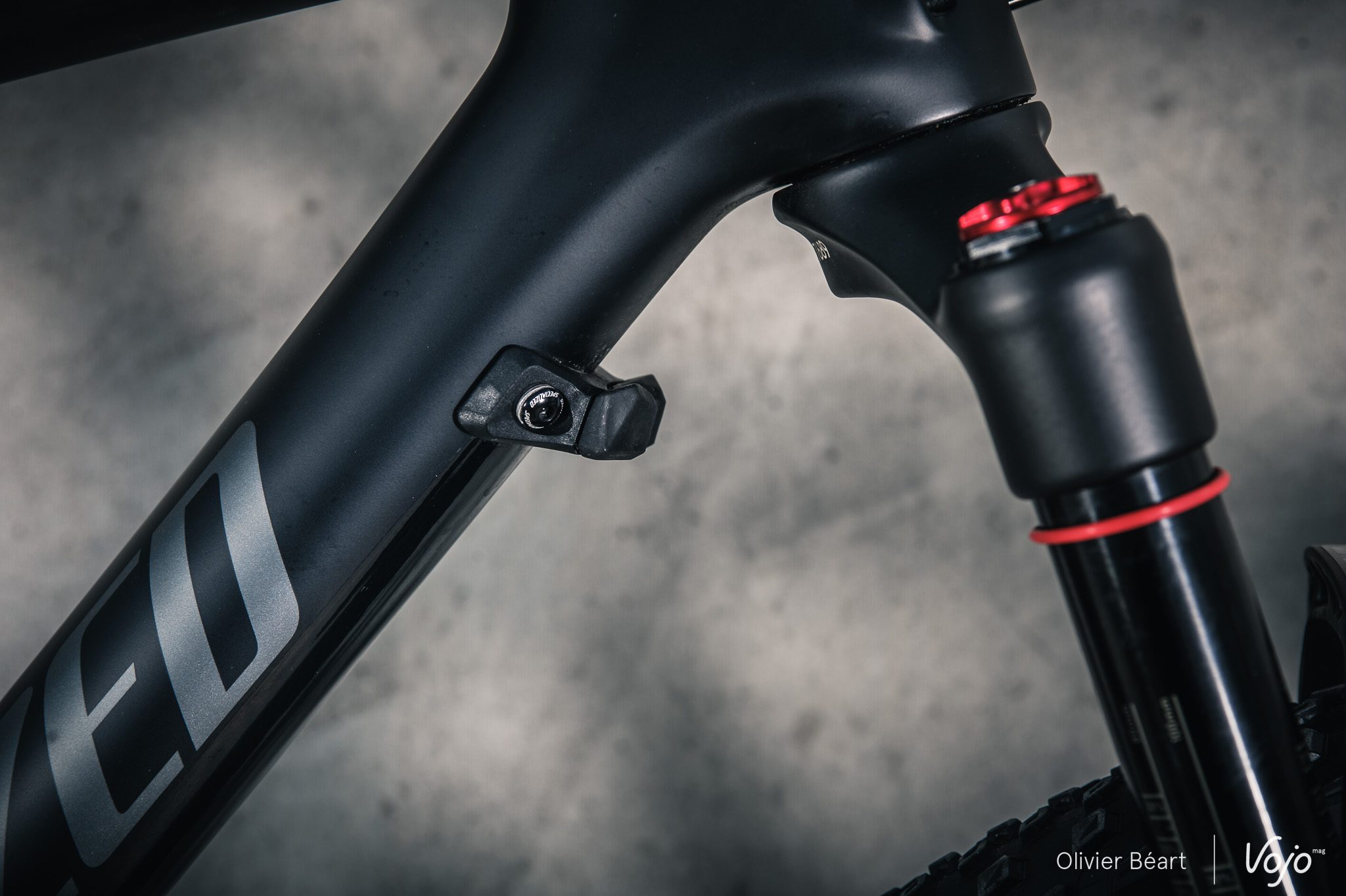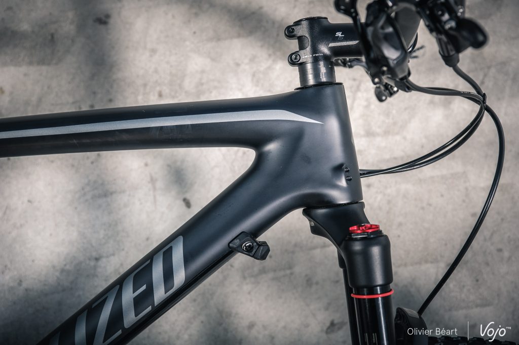 A l’avant, Specialized a retenu la nouvelle RockShox SID en version Boost (moyeu en 110mm de large) et avec un ensemble té/pivot en aluminium. Mais on y trouve surtout la fameuse cartouche Brain chère à la marque.