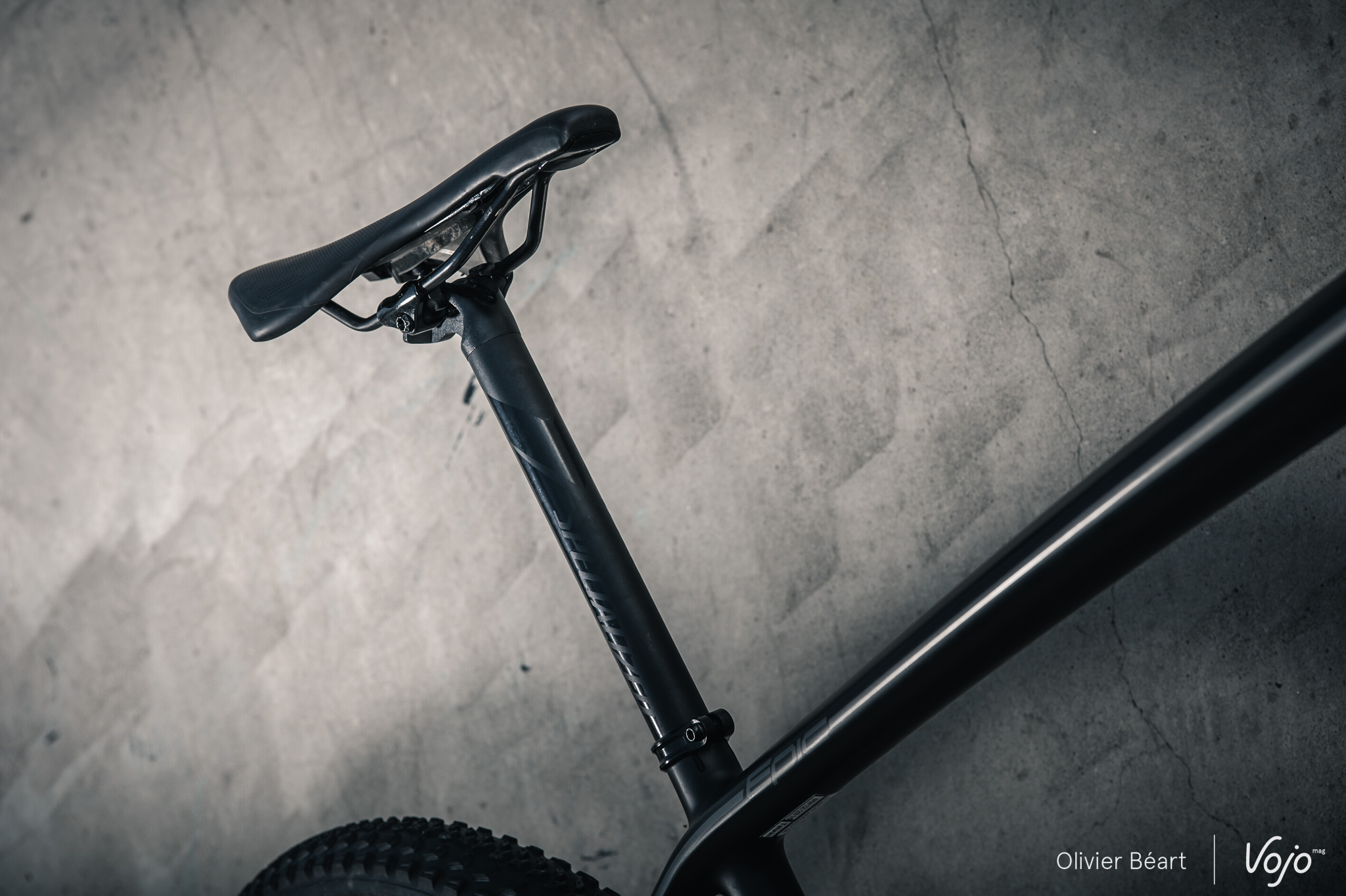 On peut dès lors s’étonner que la tige de selle du nouveau Specialized Epic HT reste en 27,2mm, ce qui limite les possibilités de montage d’une tige de selle télescopique, mais c’est avant tout pour une question de réduction de la surface des tubes. Et pour obtenir un cadre confortable, c’est surtout vers le positionnement et le choix des fibres que la marque s’est tournée. « Là aussi, nous avons joué de notre partenariat avec McLaren pour mettre la main sur des fibres de carbone qui ne sont, à notre connaissance, pas encore utilisées dans l’industrie du cycle. Outre une élasticité hors du commun, elles sont aussi très résistantes aux impacts. » Une nuance toutefois : c’est le S-Works seul qui bénéficie de ces fibres pour l’ensemble de son ossature.