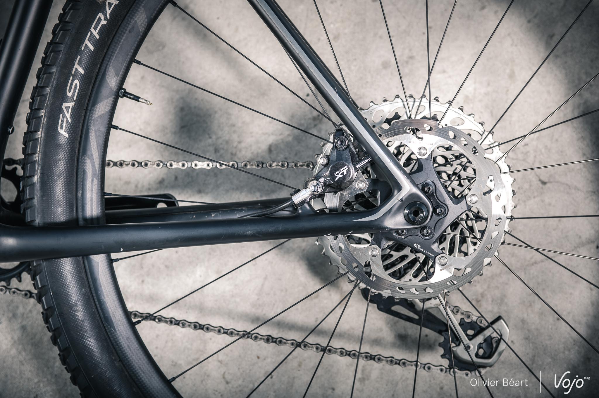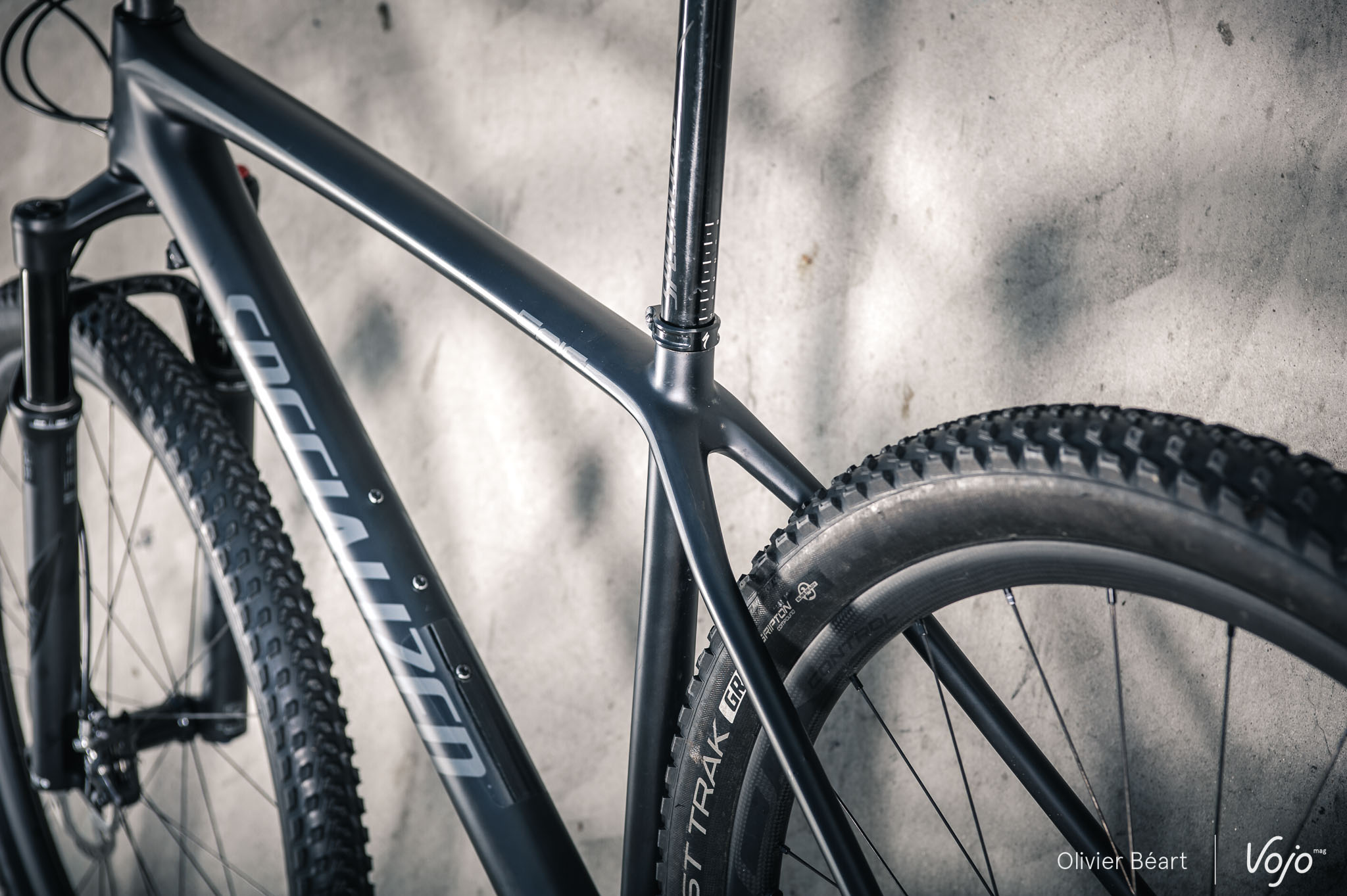 La stabilité en descente est aussi absolument remarquable. On n’est pas au niveau du fameux BMC Team Elite softail, mais on s’en rapproche très fort. L’Epic HT peut aussi dire merci à ses remarquables pneus Fast Track en 2.3 de section et dont la nouvelle gomme Gripton fait des miracles au niveau adhérence, pendant que le ballon important du pneu joue les mini amortisseurs. Le toucher du sol est presque « soyeux » comme avec des boyaux, alors que nous savons que les roues Roval Control Carbon ne sont pas les plus souples du marché.
