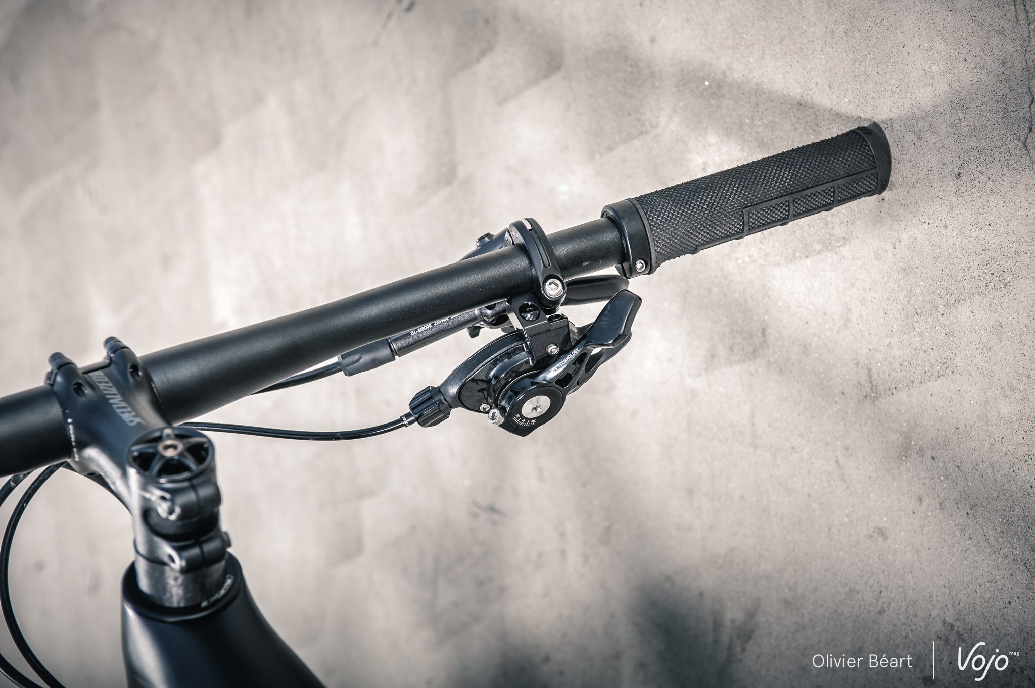 On peut aussi compter sur la fourche SID pour absorber toutes les irrégularités et sur un système Brain aujourd’hui parfaitement au point. Le blocage automatique se déverrouille avec une grande discrétion et la large plage de réglages dont on dispose pour le seuil de déblocage permet à chaque biker de trouver le bon équilibre en fonction de ses préférences. Autre petit détail agréable : il aide à dégager le poste de pilotage. Sans commande de blocage au guidon, avec un seul changement de vitesses et deux freins, cela fait juste trois gaines qui partent du cintre. Et ça peut paraître anecdotique mais rouler avec quelque chose d’épuré sous les yeux, ça aide à se concentrer sur le sentier.