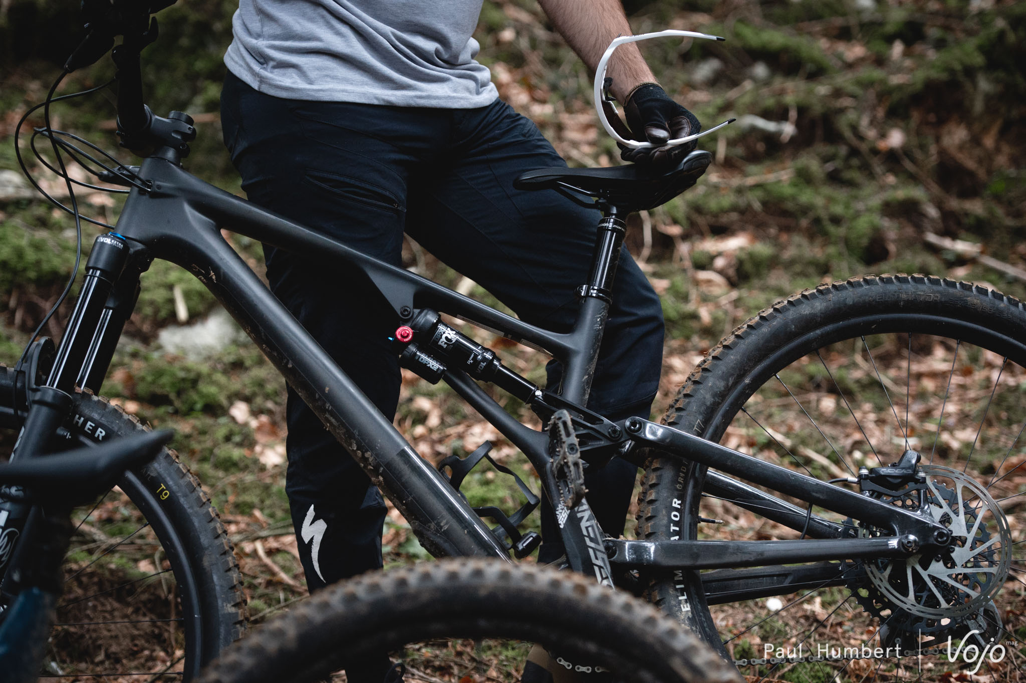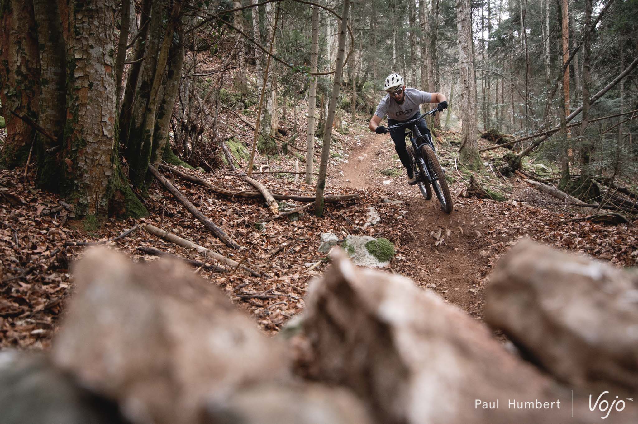 Nous avons essayé les autres configurations mais elles nous ont moins convaincus : à chaque fois, on a l’impression de sacrifier une partie des performances du vélo et de son vrai caractère pour le forcer à tendre vers un comportement vif et joueur de trail, ce qu’il n’est pas (en tout cas, pas dans ce montage). Des roues plus légères et un amortisseur à ressort hélicoïdal pourraient peut-être améliorer un peu les choses de ce côté, mais nous n’avons pas eu l’occasion de l’essayer.