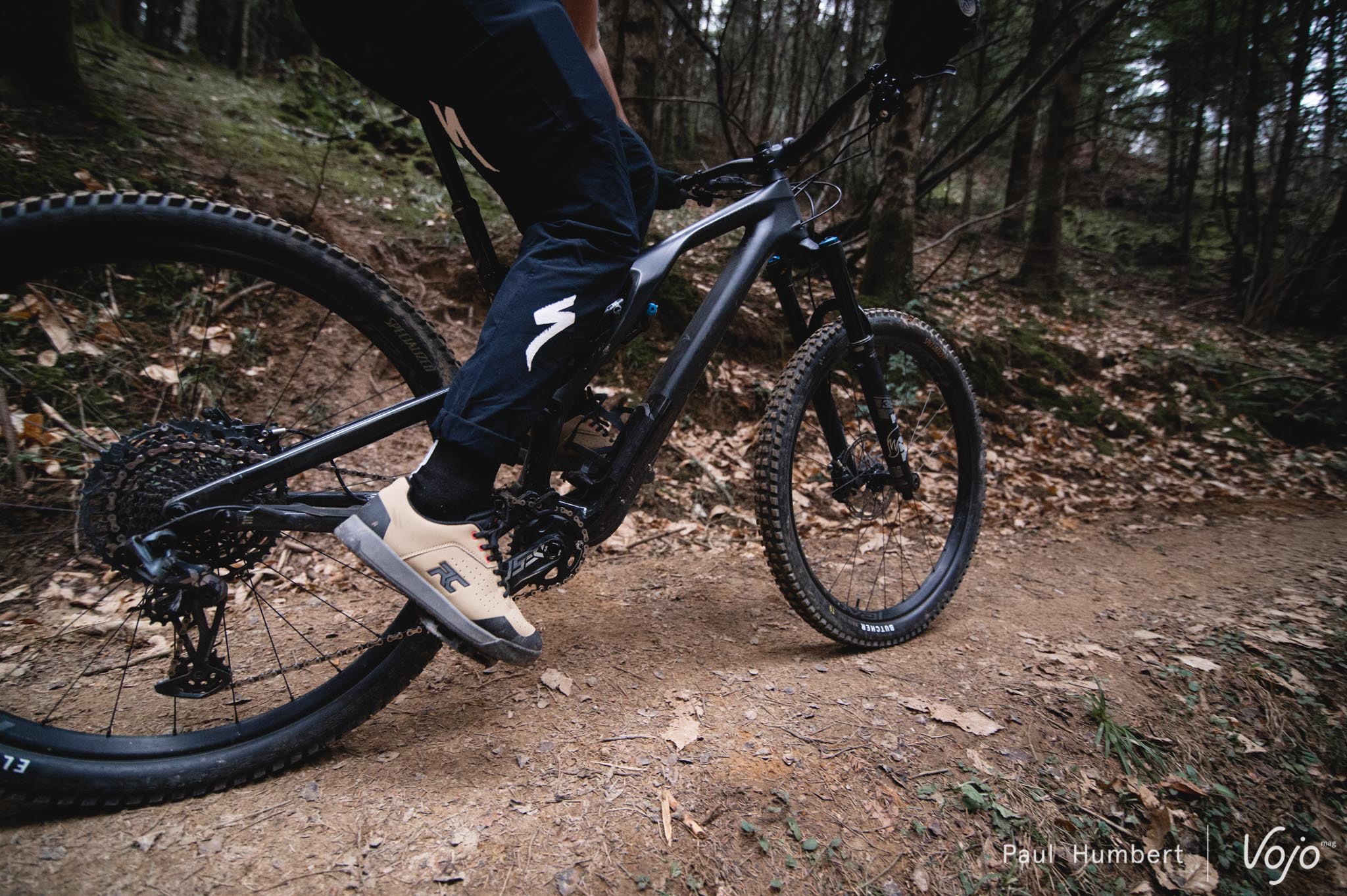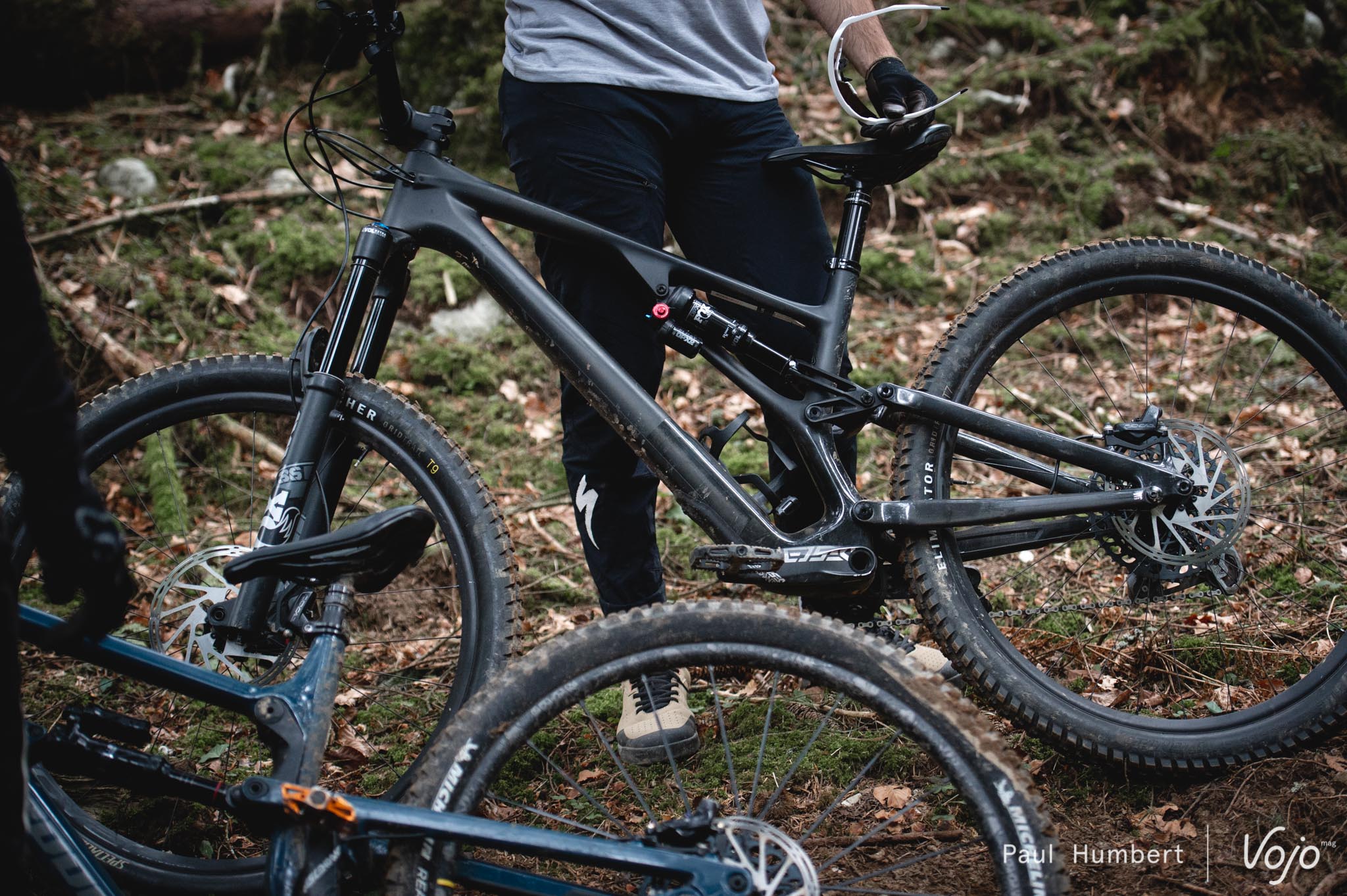 Notre relation avec les pneus fut plus compliquée : ce montage Butcher / Eliminator est très bon sur le sec, très moyen sur l’humide et complètement dépassé dans la boue. Les racines californiennes de Specialized sont bien présentes ! Pour rester chez Specialized, un combo HillBilly (AV) / Butcher (AR) offre plus de polyvalence, surtout si vous habitez dans une région qui connaît bien la pluie voire la neige. Enfin, les freins Sram Code sont toujours aussi polarisants et chacun aura son propre avis dessus.