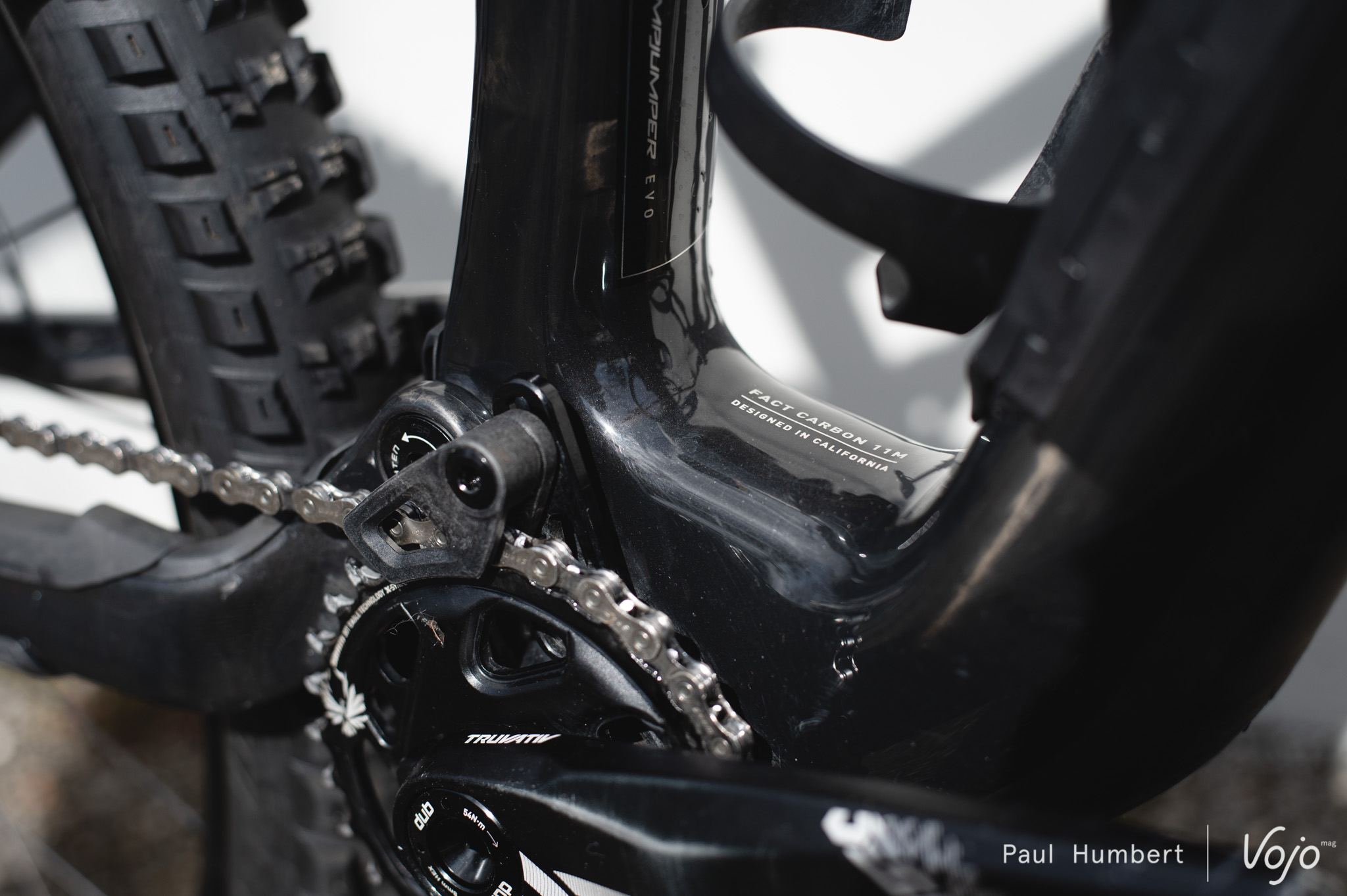 Pour tirer au maximum parti de ce caractère, la configuration boîtier bas / angle ouvert s’est vite imposée. Avec le boîtier bas, on gagne un peu en stabilité et surtout beaucoup en facilité pour inscrire le vélo dans les courbes. De son côté, l’angle ouvert amène encore de la stabilité, notamment à haute vitesse ou sur les gros chocs.