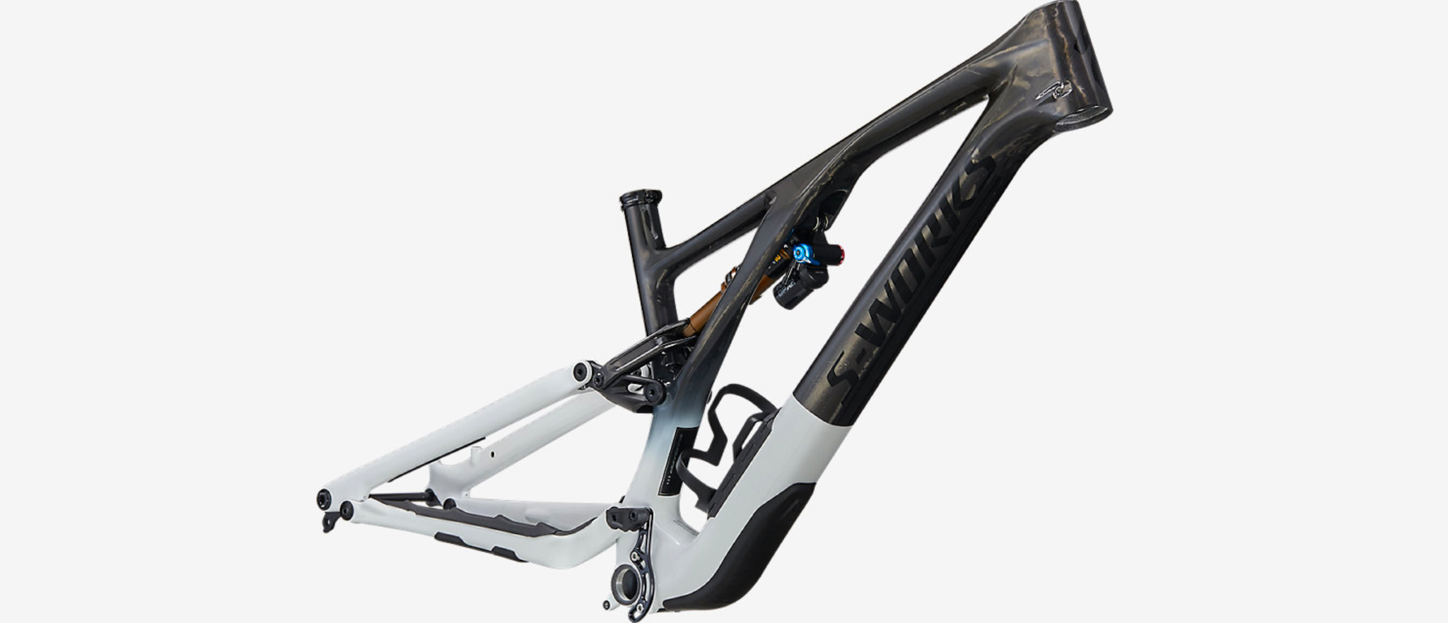 Enfin, le kit cadre n’est disponible qu’en version S-Works, avec une peinture unique qu’on ne retrouve sur aucun montage complet. Il est fourni avec un amortisseur Fox Float DPX2 Factory et s’échange contre 3 699 €.