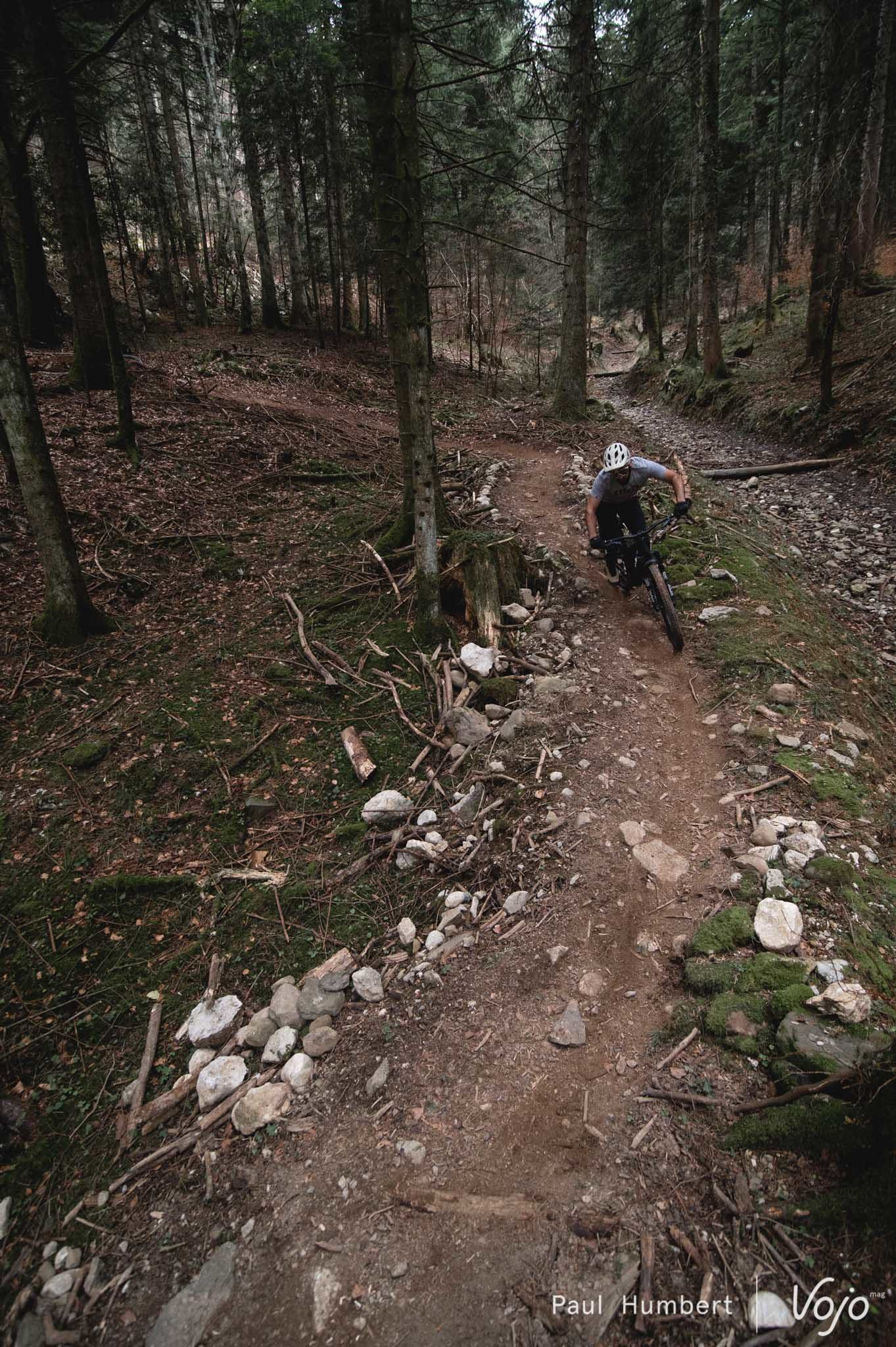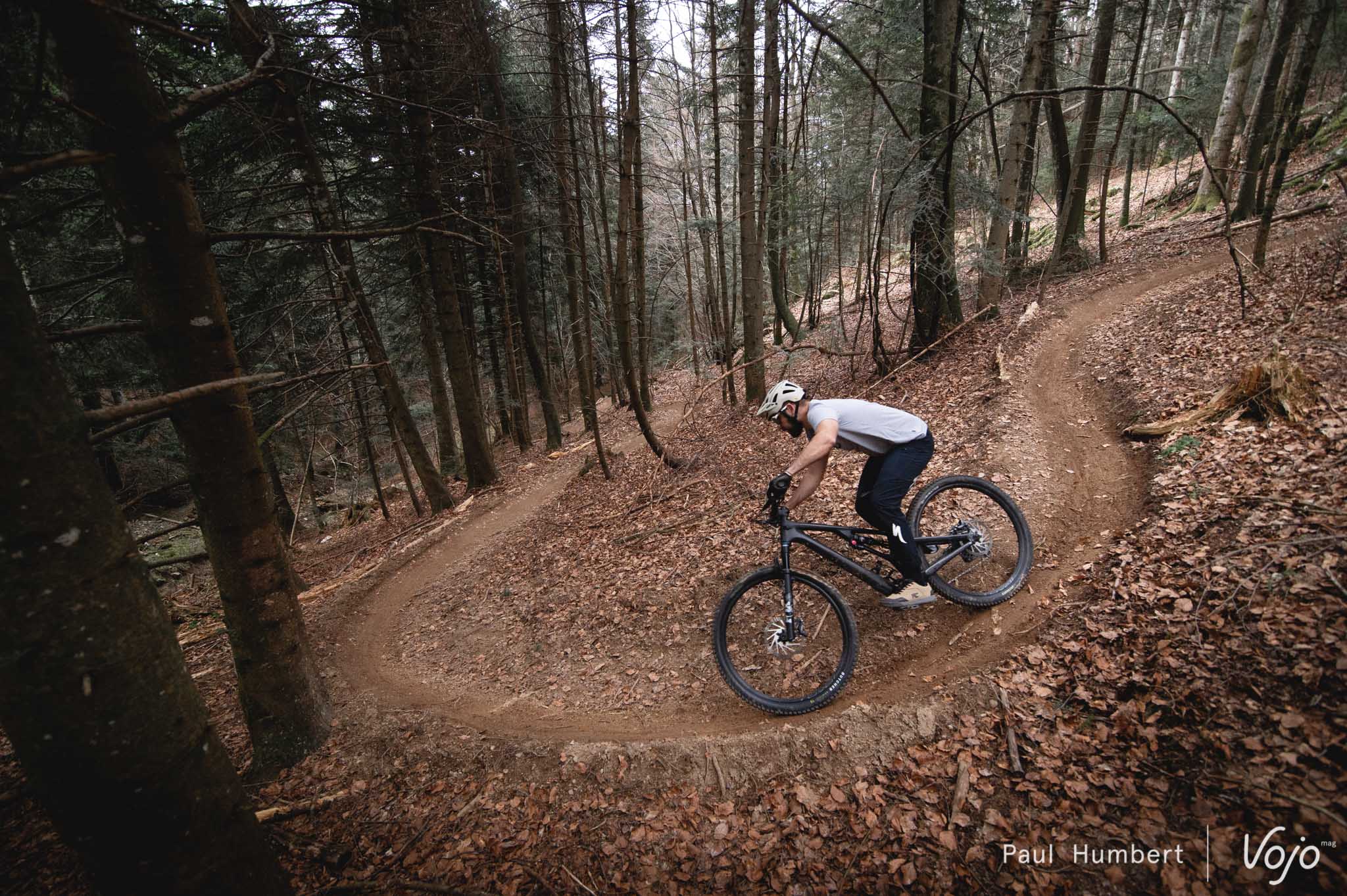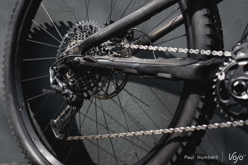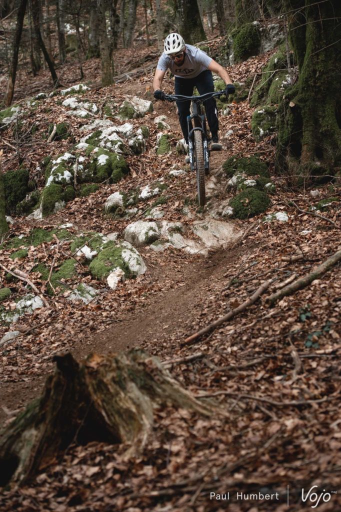 Nous avons essayé les autres configurations mais elles nous ont moins convaincus : à chaque fois, on a l’impression de sacrifier une partie des performances du vélo et de son vrai caractère pour le forcer à tendre vers un comportement vif et joueur de trail, ce qu’il n’est pas (en tout cas, pas dans ce montage). Des roues plus légères et un amortisseur à ressort hélicoïdal pourraient peut-être améliorer un peu les choses de ce côté, mais nous n’avons pas eu l’occasion de l’essayer.