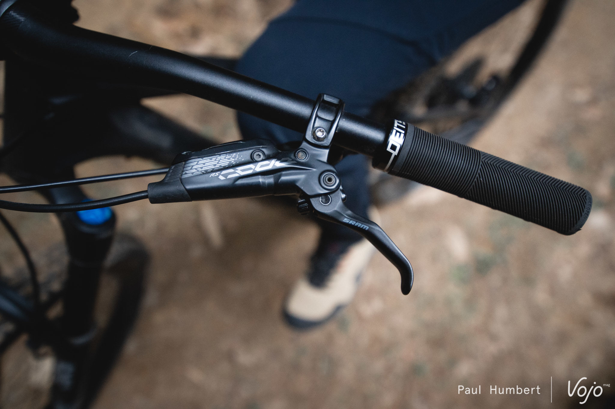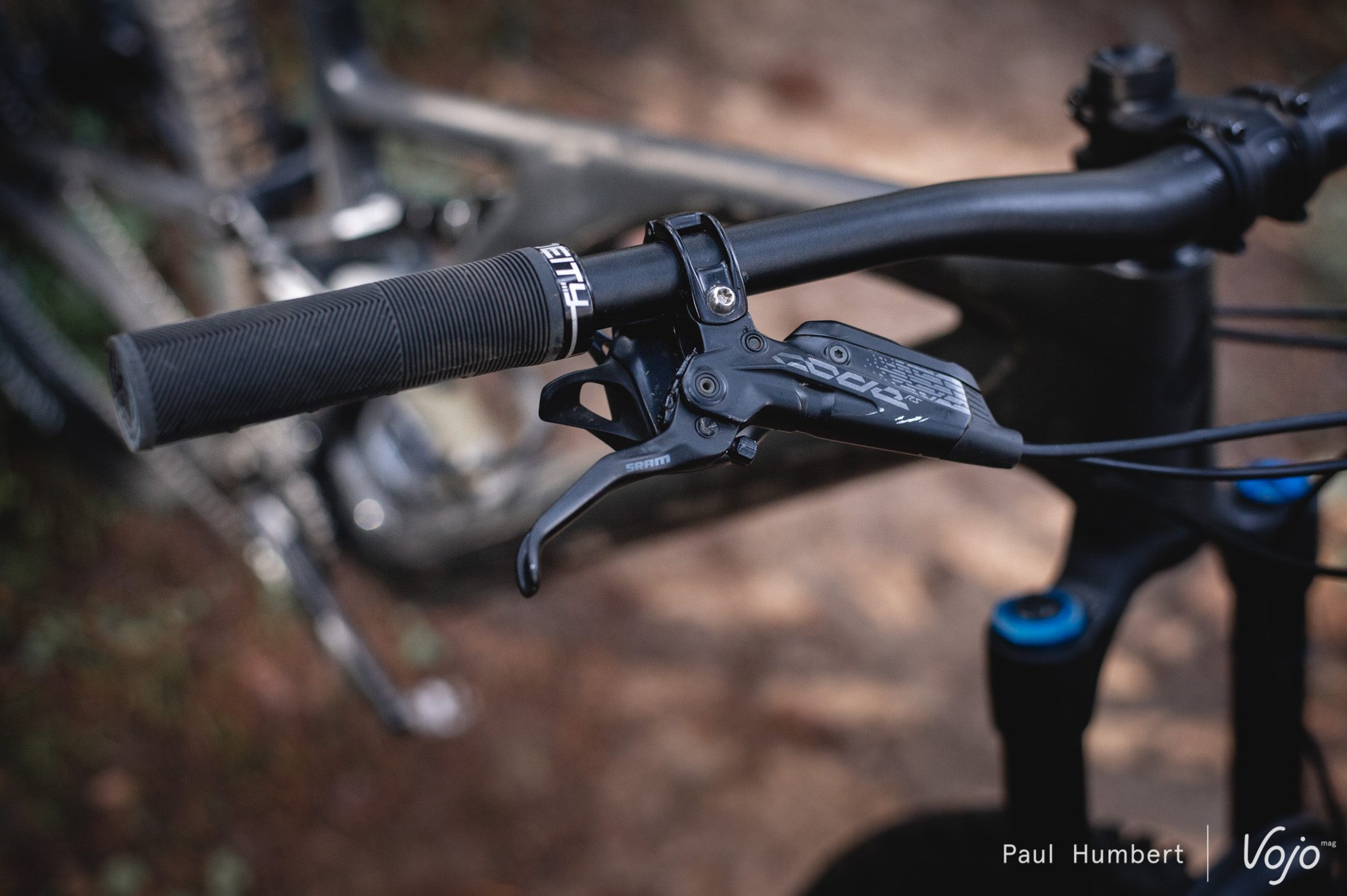 Notre relation avec les pneus fut plus compliquée : ce montage Butcher / Eliminator est très bon sur le sec, très moyen sur l’humide et complètement dépassé dans la boue. Les racines californiennes de Specialized sont bien présentes ! Pour rester chez Specialized, un combo HillBilly (AV) / Butcher (AR) offre plus de polyvalence, surtout si vous habitez dans une région qui connaît bien la pluie voire la neige. Enfin, les freins Sram Code sont toujours aussi polarisants et chacun aura son propre avis dessus.