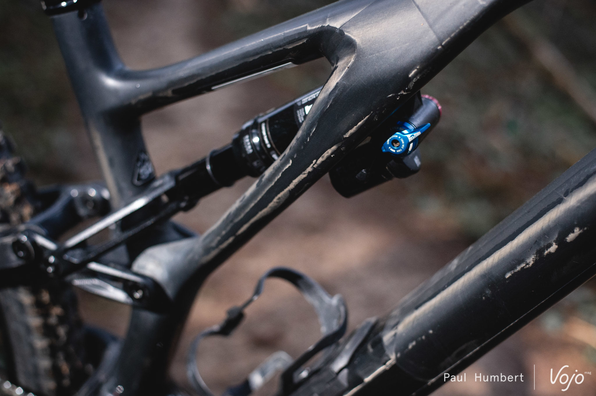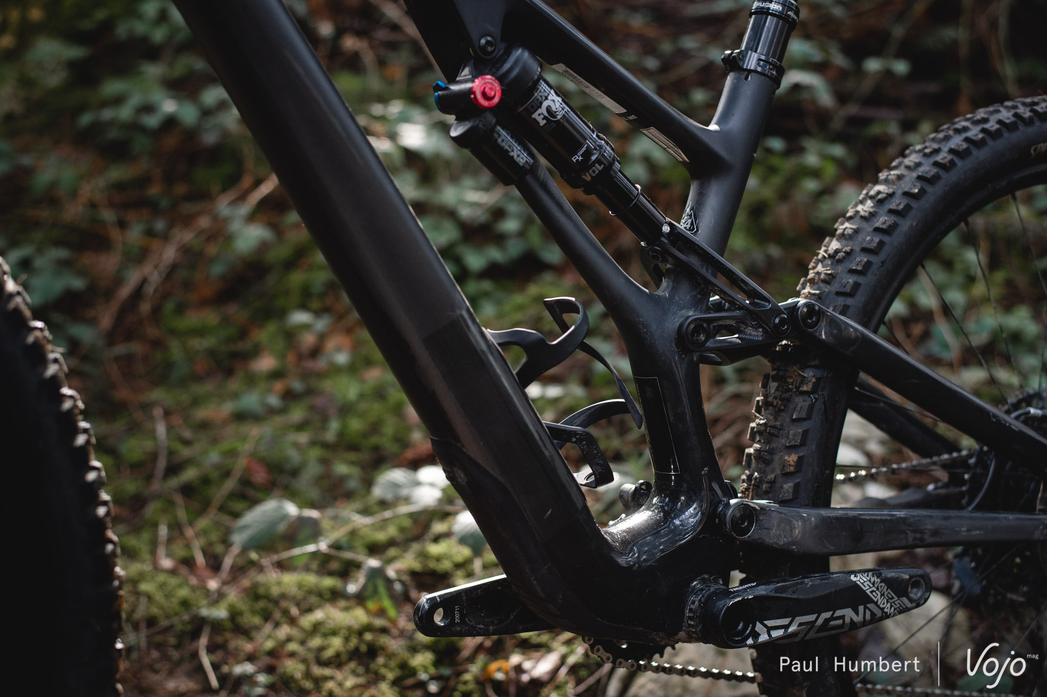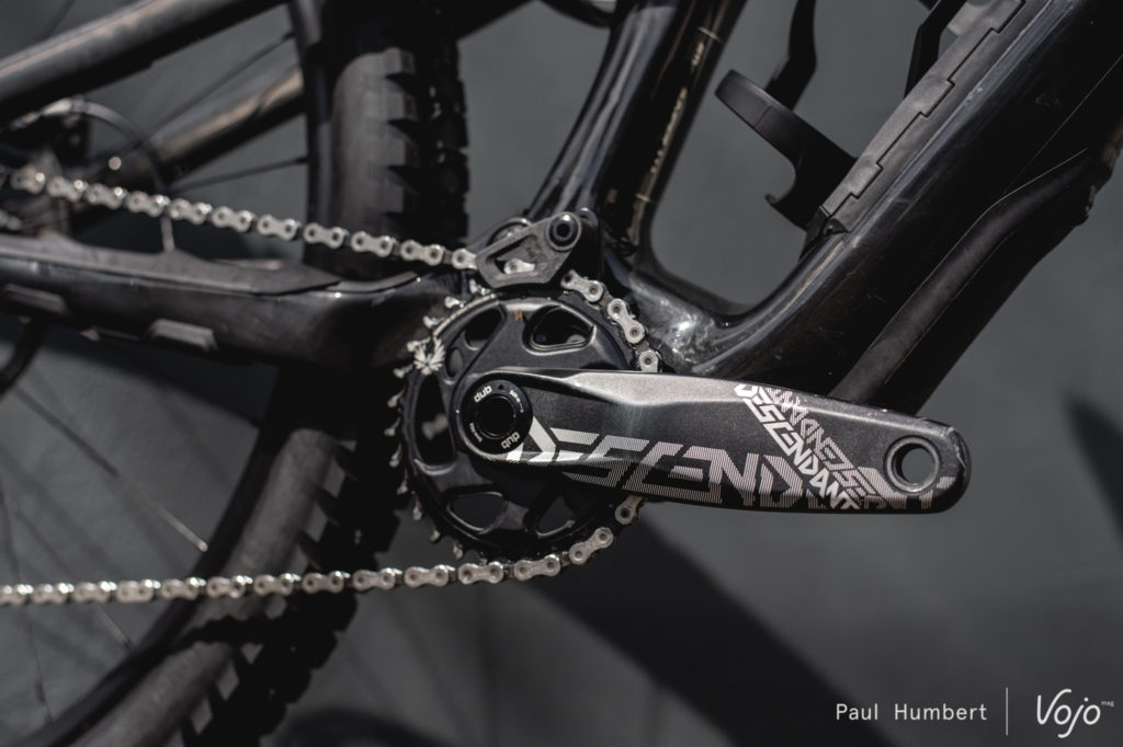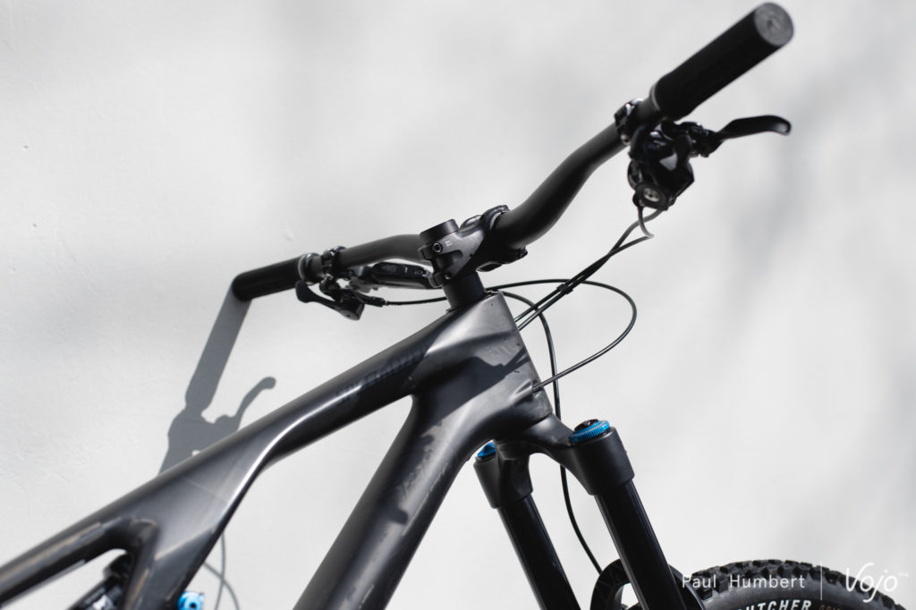 Pour tirer au maximum parti de ce caractère, la configuration boîtier bas / angle ouvert s’est vite imposée. Avec le boîtier bas, on gagne un peu en stabilité et surtout beaucoup en facilité pour inscrire le vélo dans les courbes. De son côté, l’angle ouvert amène encore de la stabilité, notamment à haute vitesse ou sur les gros chocs.