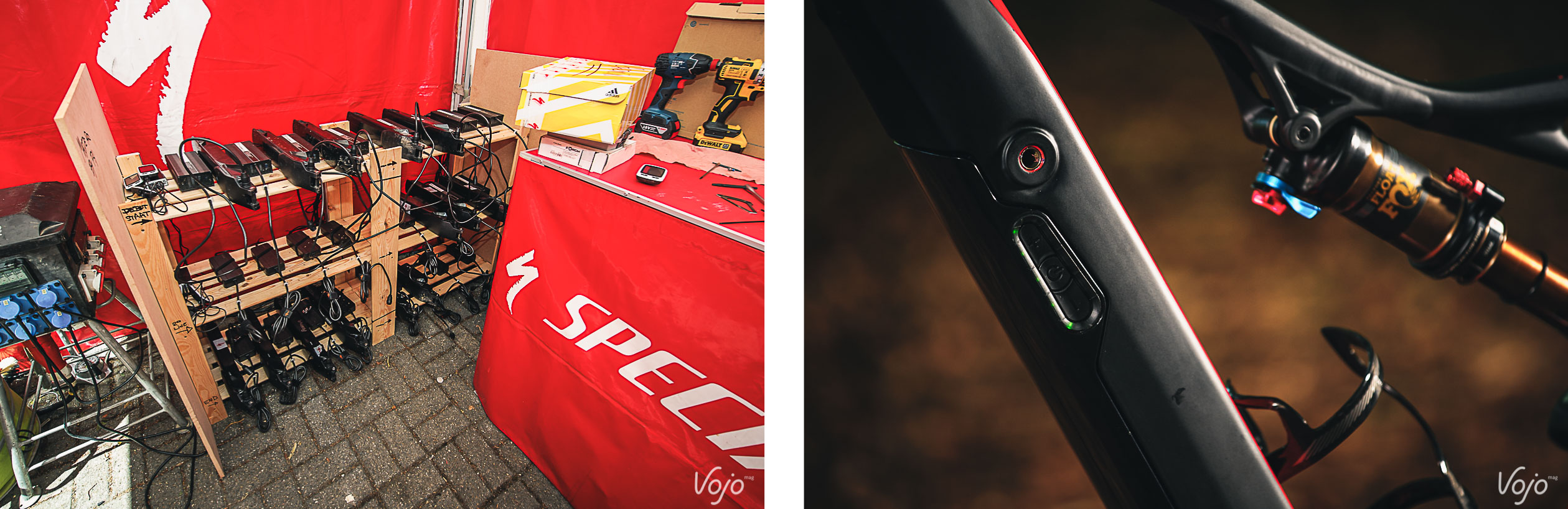 Autre point important, la simplicité du système, puisque la partie électrique des modèles de la gamme Turbo Levo n’est constituée que de quatre pièces : Un moteur, une batterie, un connecteur, un capteur de freinage pour couper le moteur, et c’est tout. « Nous avons voulu aller à l’essentiel, ce qui permet de maîtriser le poids. Le moteur ne fait que 2,8kg et la batterie 3,4kg. Le tout se recharge en 3,5h et sort 530W avec un couple de 90Nm qui est, selon nous la valeur la plus importante sur le terrain.