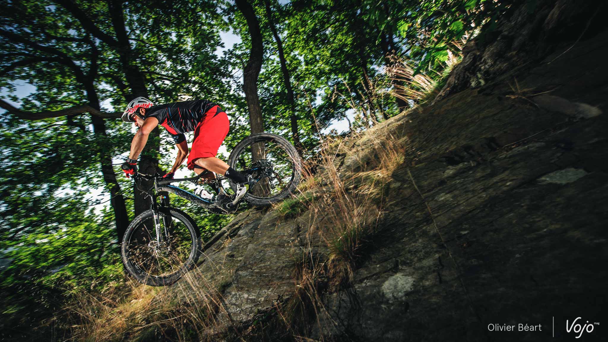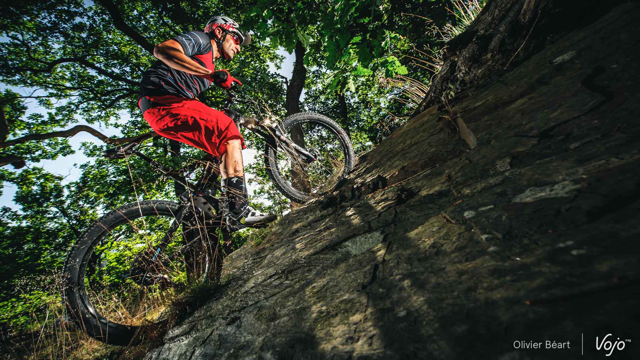Par contre, on peut aussi se lancer dans certaines portions qui seraient infranchissables avec un vélo classique, notamment des portions très raides où on peut se concentrer uniquement sur le pilotage. L’équilibre du vélo est parfait, avec une répartition des masses plus équilibrée que sur les VAE que nous avons testé jusqu’à présent et sur lesquels nous avons souvent eu l’impression d’un avant fort léger et pas toujours facile à placer.