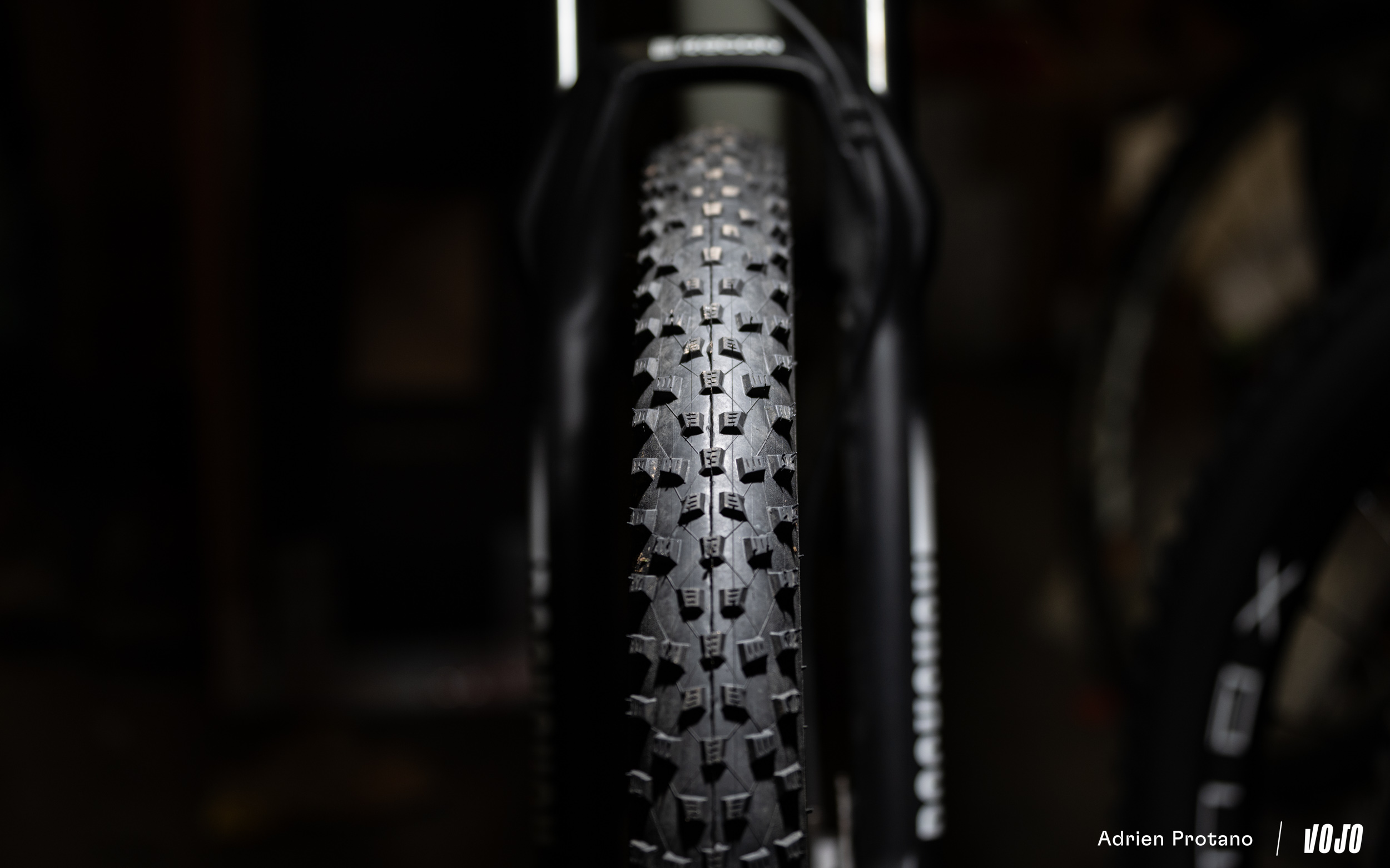 A l’avant, le Rocket Ron est, selon nous, clairement surpassé à tous les étages par son cousin le Racing Ray qui offre une meilleure accroche latérale autant dans la boue que sur les sols plus durs, surtout quand ils sont humides. Par contre, à l’arrière, le Rocket Ron peut offrir une belle solution de compromis quand le Racing Ralph et ses crampons fort rapprochés sont dépassés (boue collante) sans pour autant pénaliser trop le rendement sur route et grands chemins, ni perdre toute traction sur les sols plus durs.