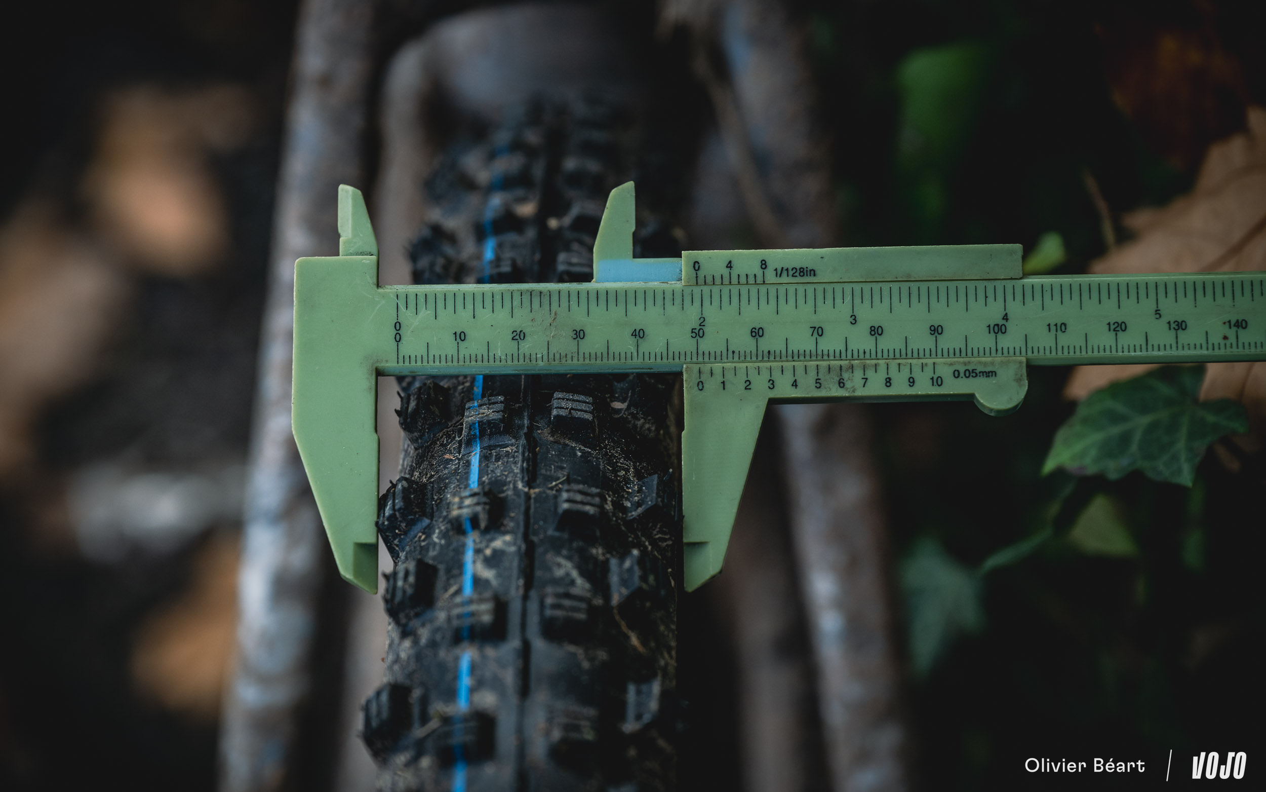 Bref, si on peut oublier les vieux pneus hyper étroits, on recherchera tout de même le compromis et des pneus de section autour de 2.2 nous semblent aujourd’hui être le meilleur choix. Cette largeur permet de garder de la polyvalence en évitant le phénomène de « surf » qu’on peut rencontrer en 2.4 dans la boue, tout en évitant les écueils des pneus de plus petite section. En 2.2/2.25, on ne va pas devoir gonfler trop fort non plus (contrairement au 2.0), ce qui permettra de préserver de l’accroche sur les reliefs et le confort (meilleure filtration des vibrations).