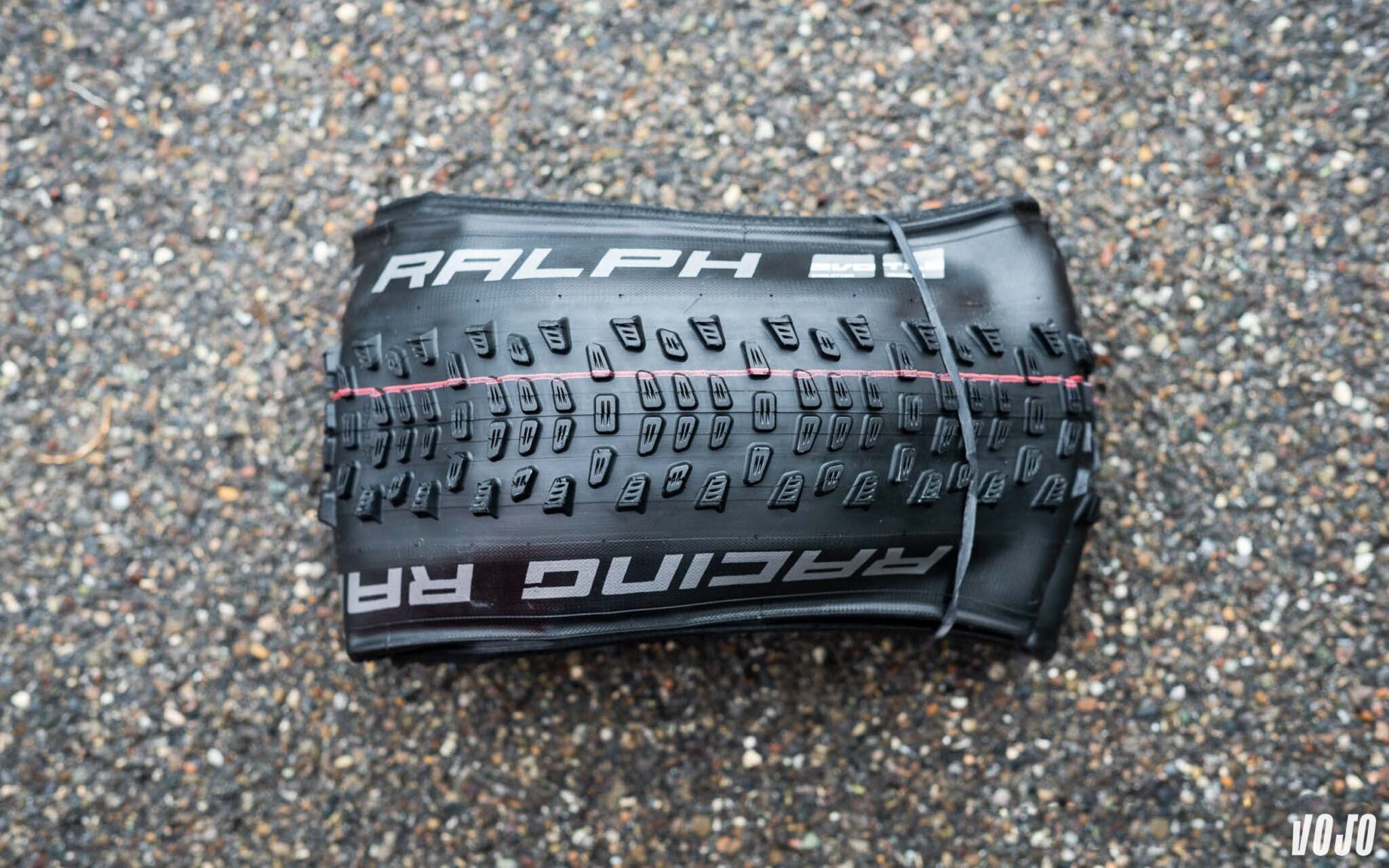 Du côté de la section, le duo Schwalbe Racing Ralph/Ray est disponible en 2.10, 2.25 et 2.35 pouces de section. Le 2.10 est présent au catalogue mais dur à trouver et vraiment très fin, trop fin à nos yeux. A l’autre bout du spectre, le 2.35 évite les écueils de certains pneus en 2.4, et leur profil tout de même bien cramponné pour des pneus de XC compétition aide bien aussi. Comprenez par là qu’ils parviennent à s’en sortir dans la boue là où d’autres « gros » pneus de XC sont complètement en panique. Pour l’hiver, on vous conseillera d’opter pour les 2.25, un peu plus fins que les 2.35 et clairement plus à l’aise sur les terrains meubles, tout en préservant, par rapport aux 2.10, une section leur permettant d’être à l’aise sur les terrains plus compacts et techniques.