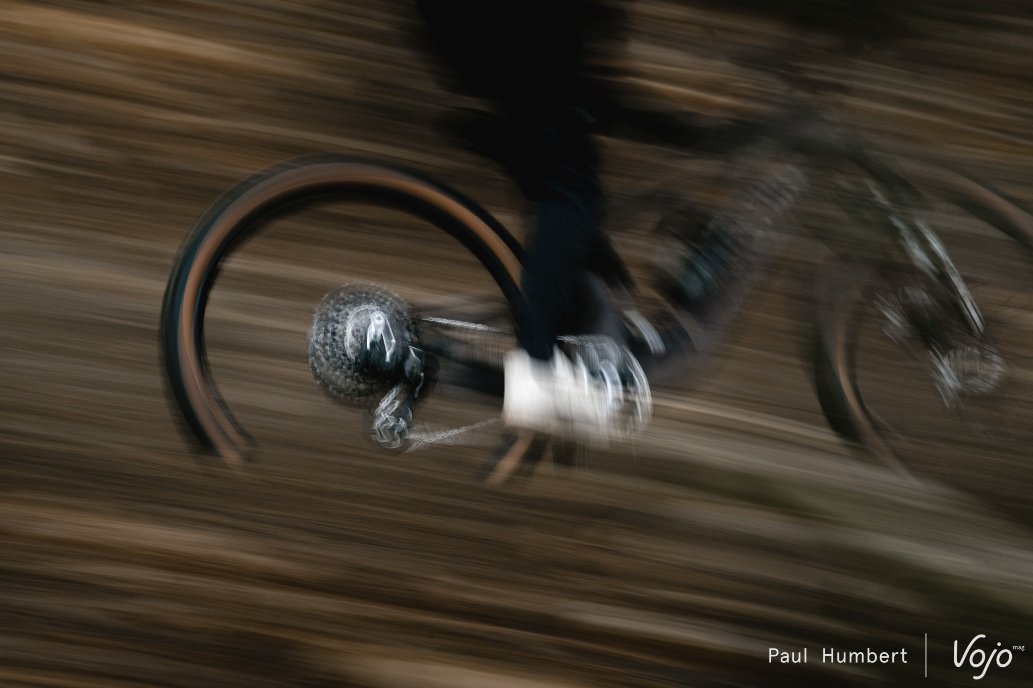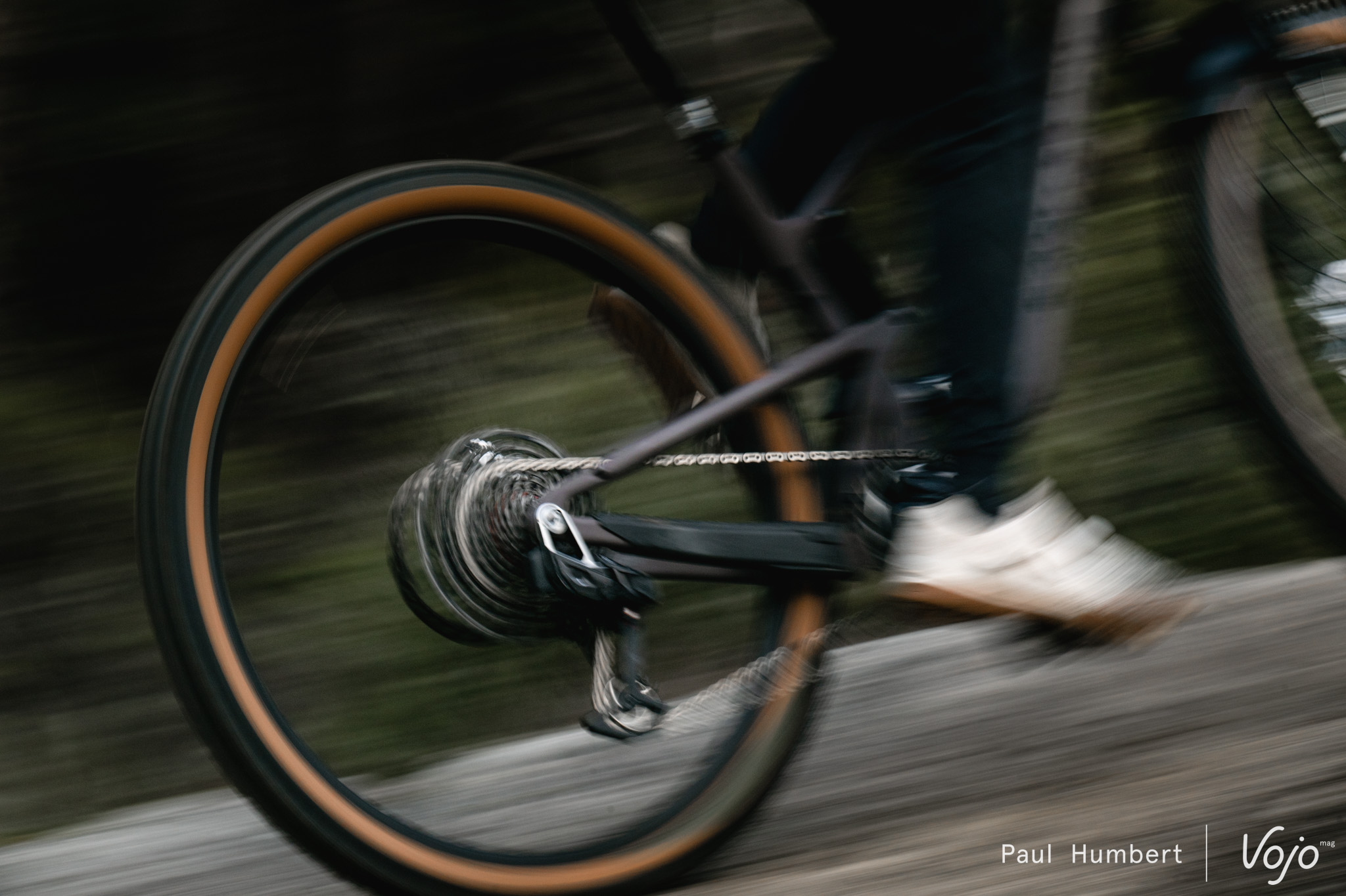 La première chose qui marque, c’est bien sûr la qualité des passages de vitesse qui a de quoi faire de l’ombre aux meilleurs groupes de route. On retrouve toute la douceur qui caractérise depuis quelques années les transmissions Sram, après avoir longtemps été l’apanage de Shimano… sauf que cette fois, ça fonctionne même en sprint ou avec tout son poids sur les pédales dans un mur mal anticipé. On peut littéralement « désapprendre » à changer de vitesse proprement ! Après tout, ça passe et même très bien alors pourquoi soulager le coup de pédale ?