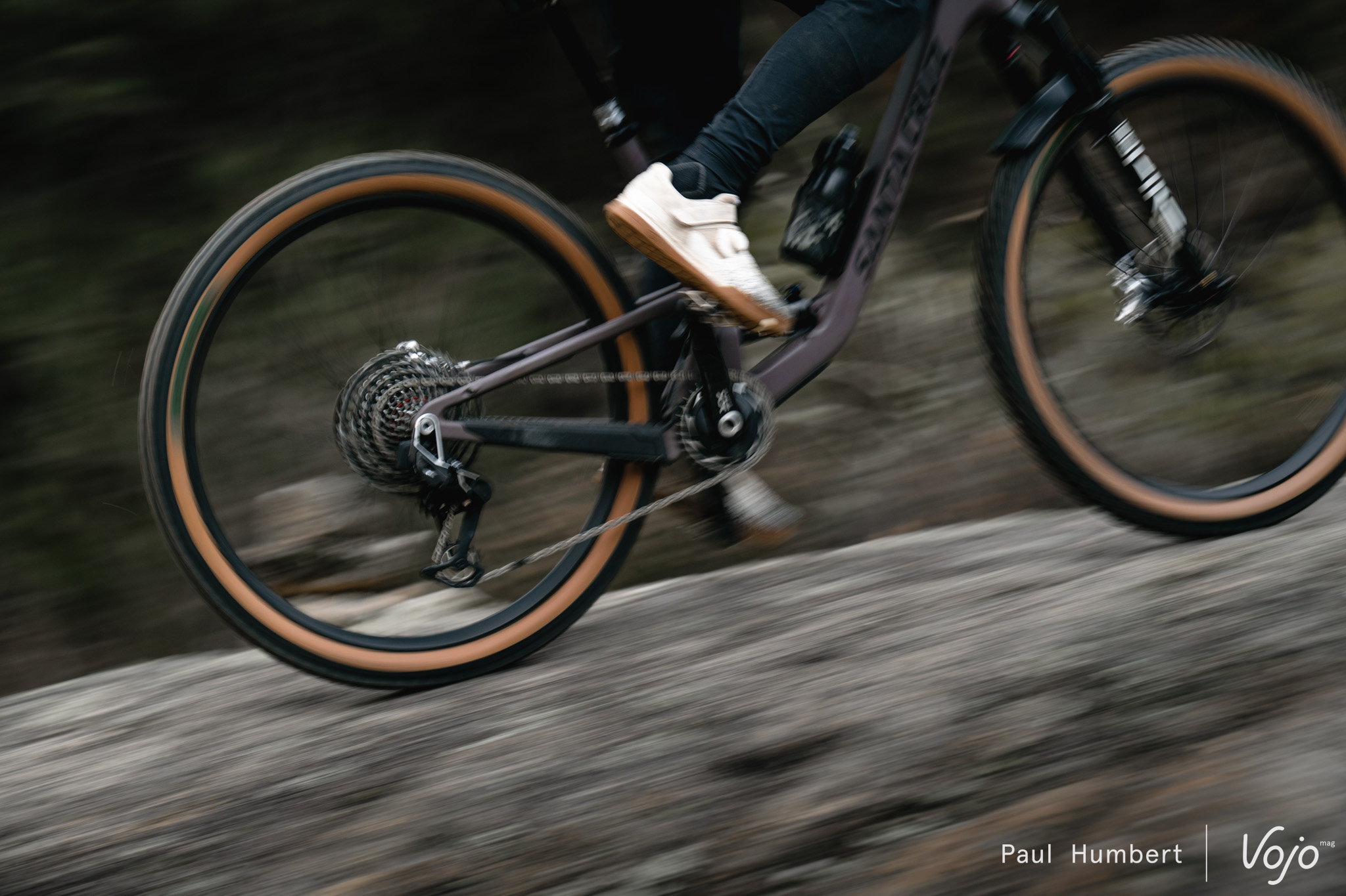 Sur un vélo classique et hors pratique compétition, ça reste toutefois plus du confort qu’autre chose. Bien sûr, on apprécie de ne pas avoir d’à-coups lorsqu’on effectue un changement à la hâte, surpris par le profil du sentier, mais c’est une situation qui arrive finalement assez rarement et le reste du temps, la sensation est assez proche d’un groupe Eagle (encore plus en AXS) classique neuf et bien réglé. On imagine que ce seront surtout celles et ceux qui roulent en e-bike qui profiteront le plus de cette qualité.