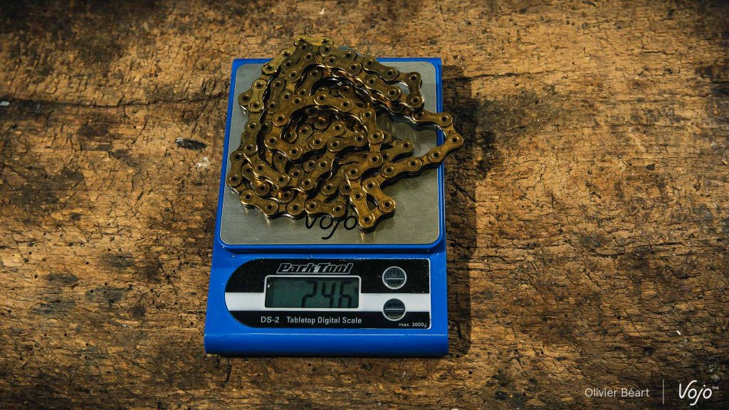 L’usure semble plus faible qu’en 11 vitesses et les quelque 700km effectués avec le groupe entre nos mains (il n’était pas 100% neuf non plus quand nous l’avons reçu) n’ont pas entraîné d’allongement mesurable par notre outil Rohloff (moins de 0,075mm). De très bon augure pour la suite !