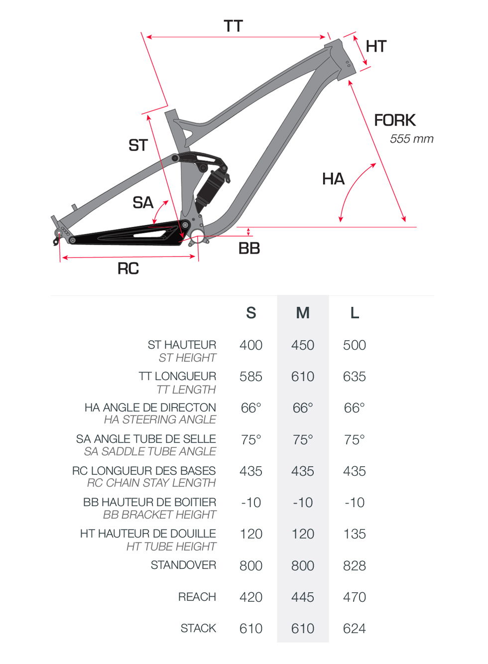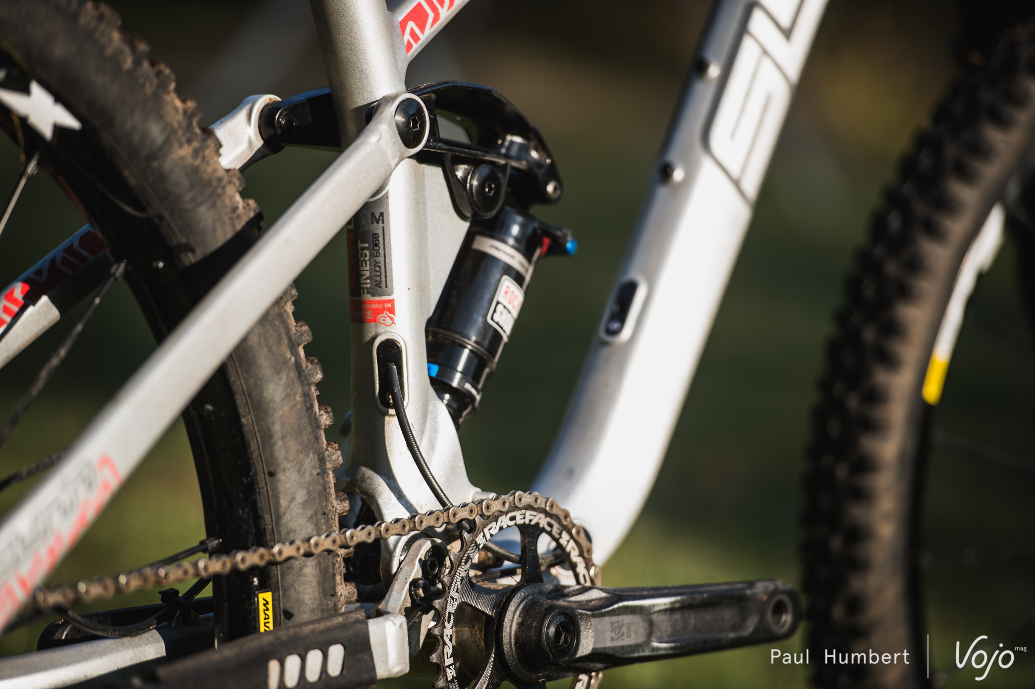 La machine est construites de solides tubes d’aluminium 6069 T6 et s’articule autour d’une cinématique à point de pivot virtuel de type four bar linkage. Baptisée VR-LR (virtual rotation – leverage ration) par la marque, la cinématique veut offrir grip, sensibilité en début de course et efficacité au pédalage. On devrait également y retrouver un bon maintien en fin de course et, au milieu, le grip est annoncé comme excellent.