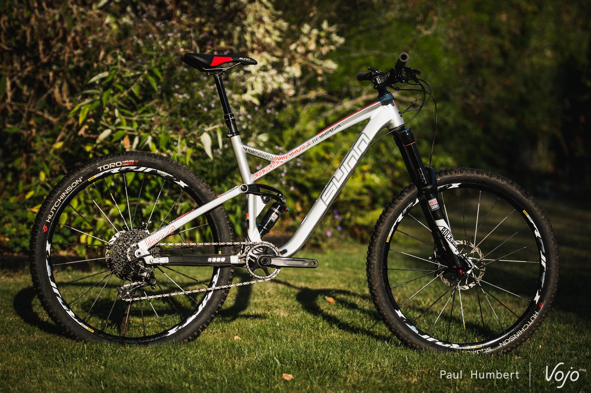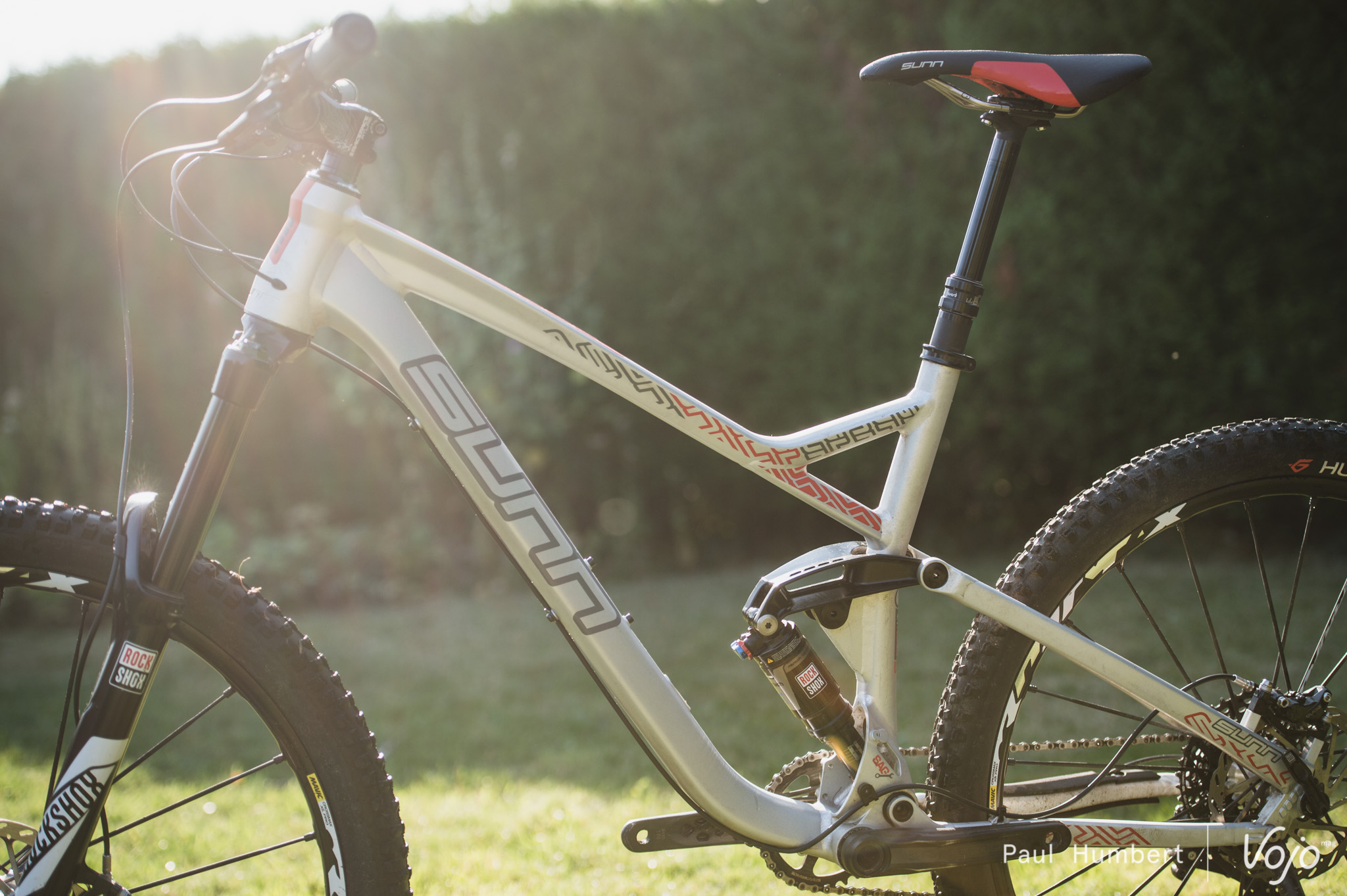 Côté suspension, Sunn s’est tourné vers Rock Shox avec la Pike RC à l’avant et le Monarch RT à l’arrière. Sans token, la fourche a tendance à être un peu trop linéaire mais on contre rapidement cela et l’ensemble a fonctionné harmonieusement sur la machine.