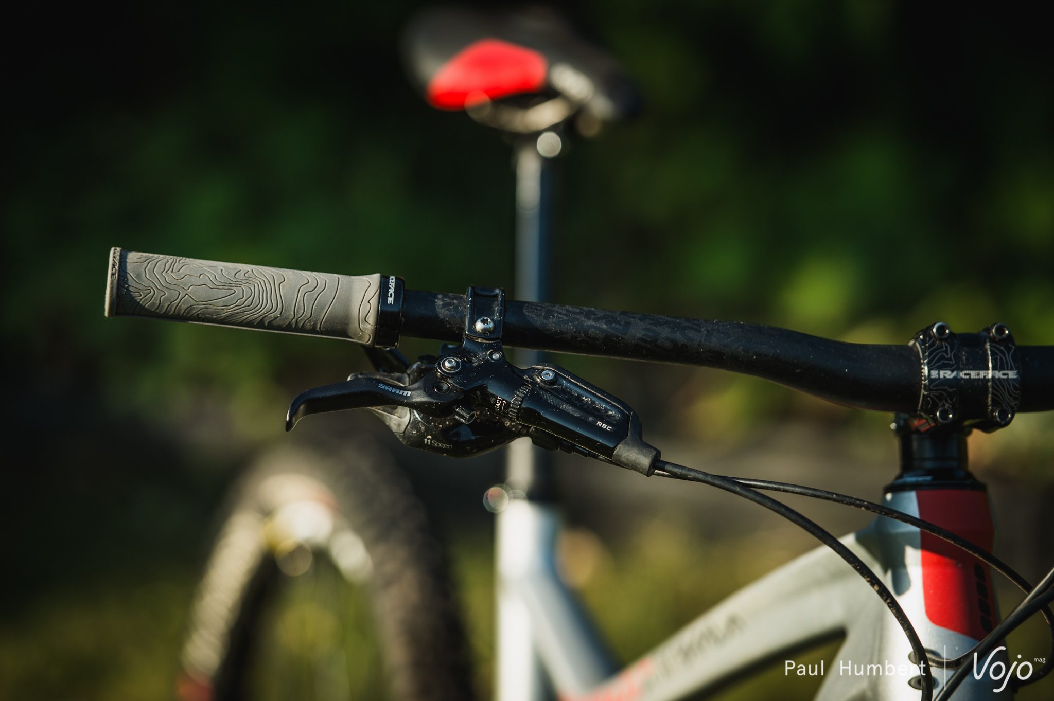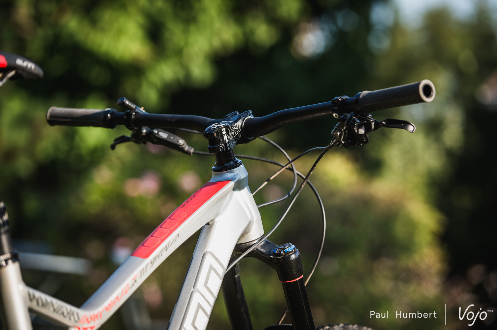 Le poste de pilotage est bien proportionné avec son cintre RaceFace Atlas de 785mm de large et légèrement relevé. Il s’accompagne d’une potence Atlas de 50mm et de poignées Half Nelson de la même marque.