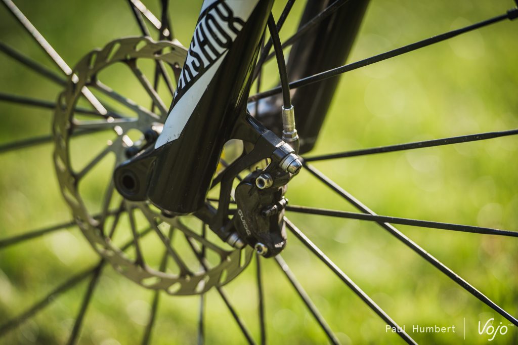 Le freinage s’est avéré bon tout au long du test avec les Guide RSC de chez Sram et leurs disques de 180mm de diamètre.