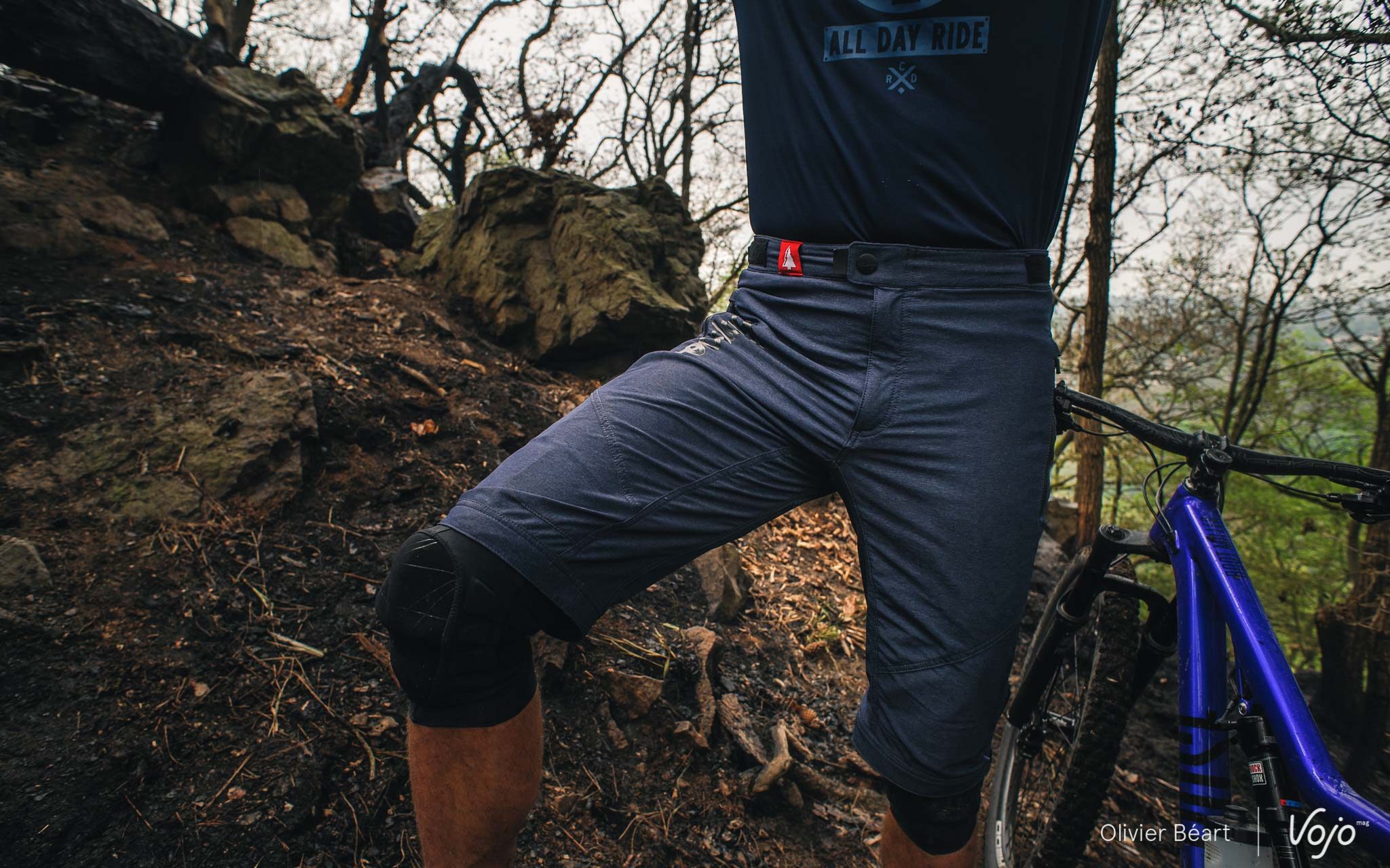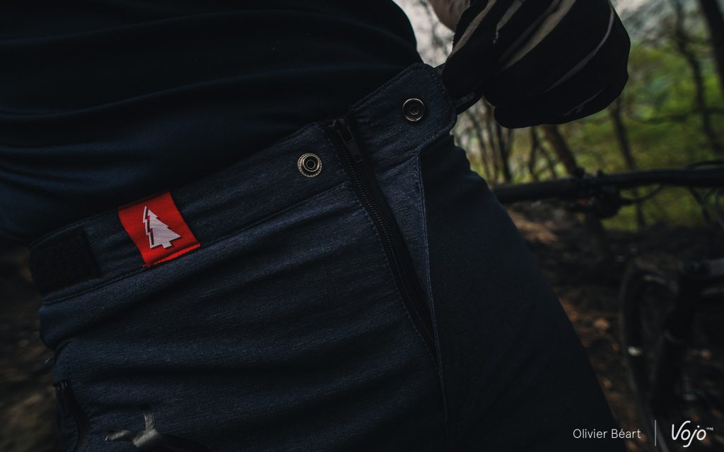 Le niveau de finition atteint la perfection avec des ajustements tiptop et des matériaux à l’aspect valorisant. La finition « jeans » de son tissu plaît aussi beaucoup et permet d’envisager un usage hors vélo (il existe aussi en anthracite). Mais surtout, la durabilité de l’ensemble est exceptionnelle. Après 9 mois d’usage intensif, il est tout simplement comme neuf ! Il nous est arrivé de chuter, râper des arbres et même de nous trainer par terre dans des positions improbables pour prendre des photos quand nous sommes derrière la caméra et… rien.