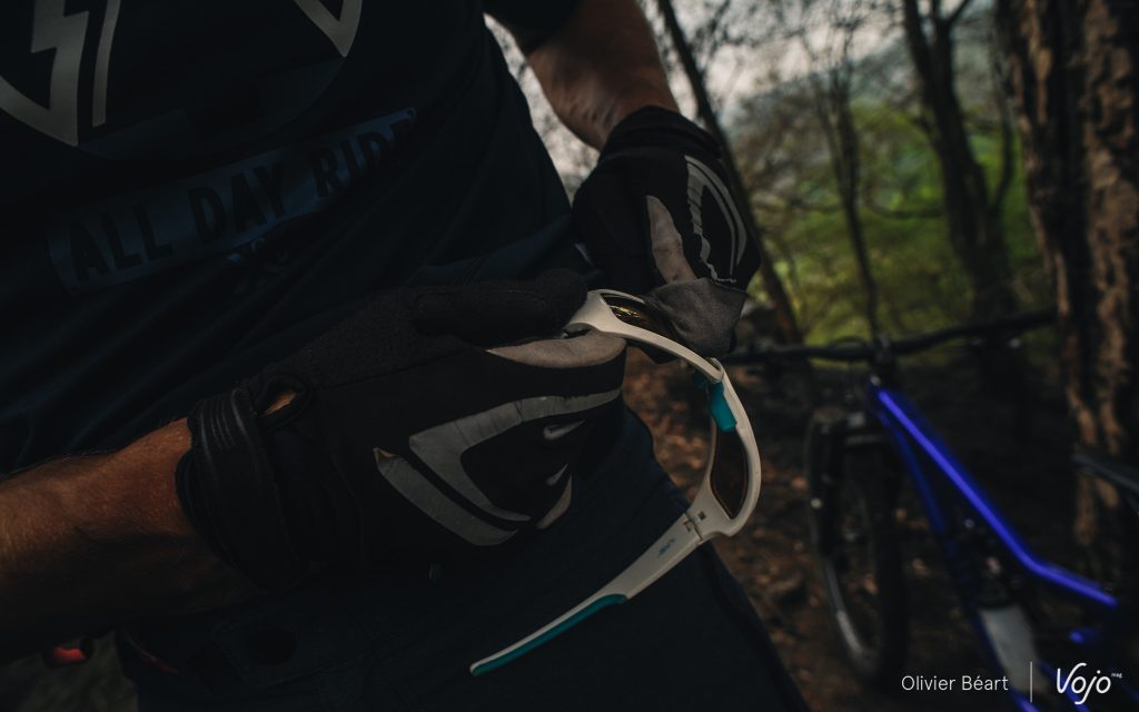 Quant à la forme, elle est assez ample mais plutôt bien calculée même pour les gabarits minces qui n’auront pas l’impression de porter un pyjama taille XL. Seules les manches sont un peu longues, mais l’élastique présent au bout permet de les faire tenir en position 3/4 même pendant le ride. Leur amplitude permet aussi de porter des coudières sans souci. Petit détail intéressant : il dispose d’un petit insert à l’intérieur côté gauche pour nettoyer ses lunettes.