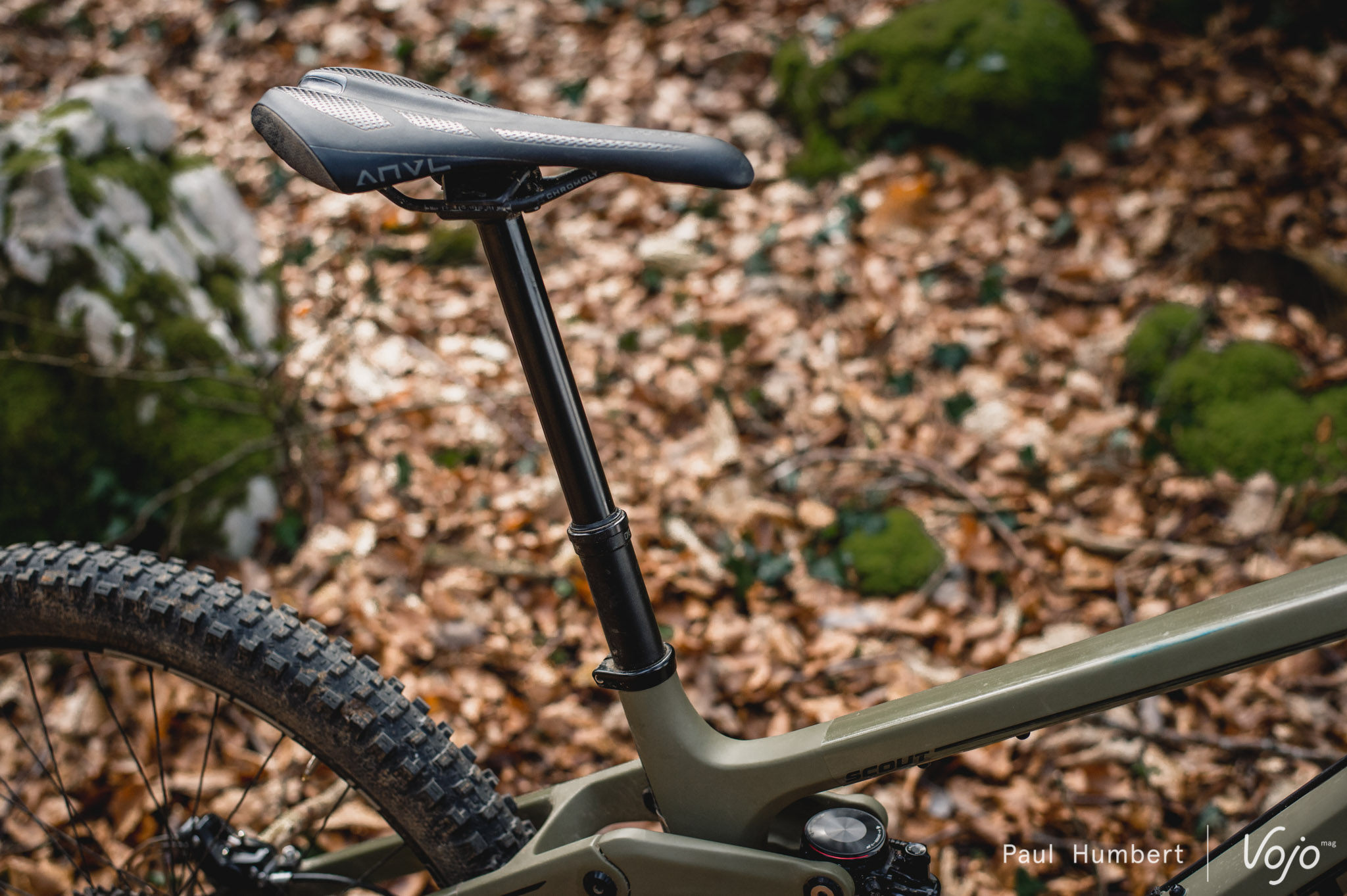 Du côté des composants qui nous ont séduits et qui renforcent la bonne impression que nous a laissée ce vélo, il faut mentionner la tige de selle OneUp V2 et les poignées Sensus Lite. La première est un modèle en terme de douceur au levier et de rapidité de fonctionnement et le grand débattement (réglable par pas de 10 mm) ne semble pas affecter sa fiabilité. Avec 525 g en 30,9 mm de diamètre et 180 mm de débattement, son poids est dans la bonne moyenne et pour ne rien gâcher, elle est plutôt abordable. Elle est en effet affichée à 209 € sans levier (compter 49 € de plus pour ce dernier), soit 100 à 200 € de moins qu’une bonne partie de la concurrence.