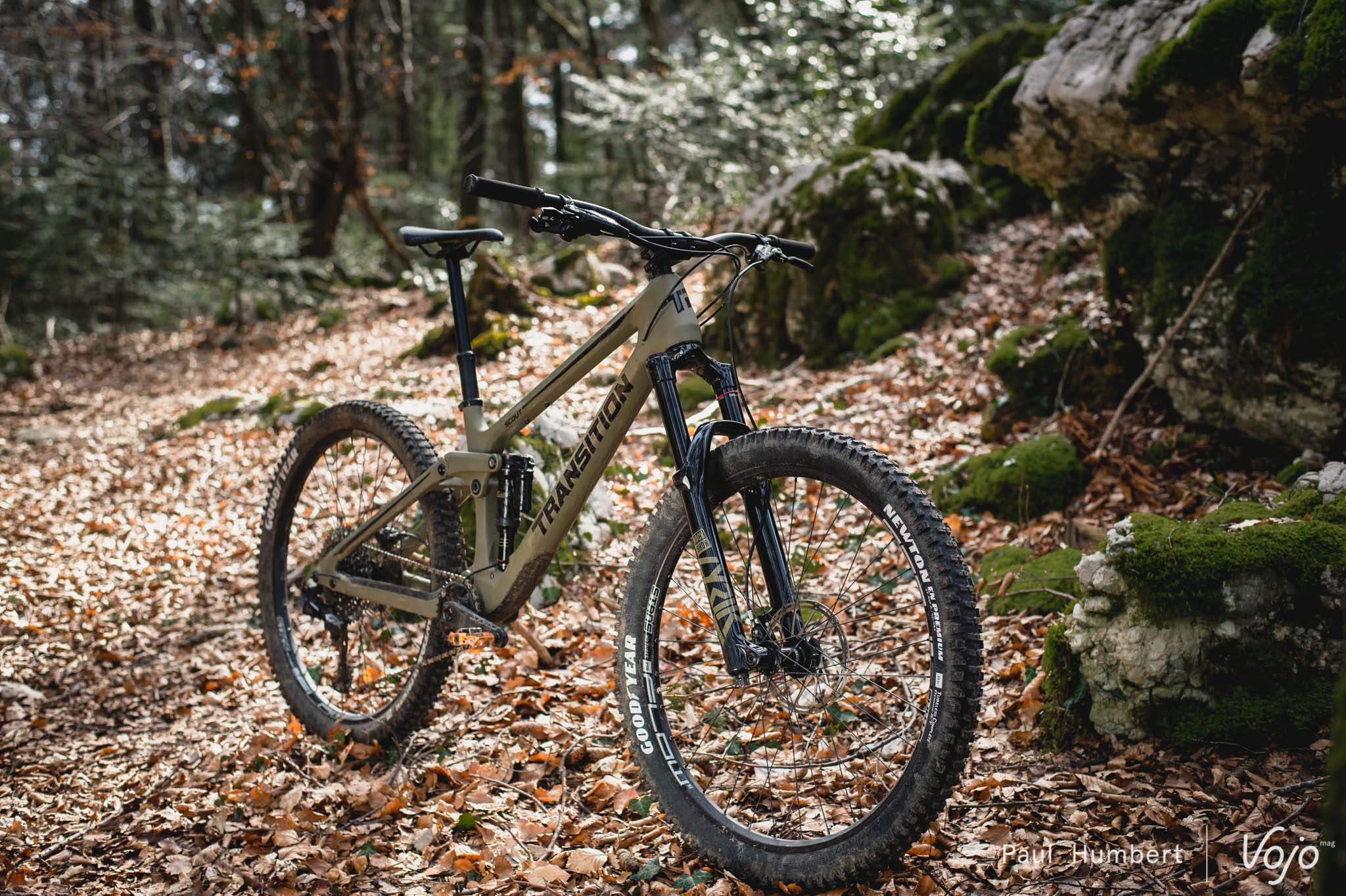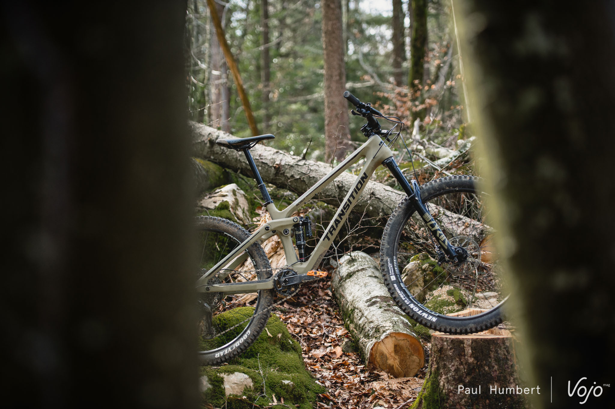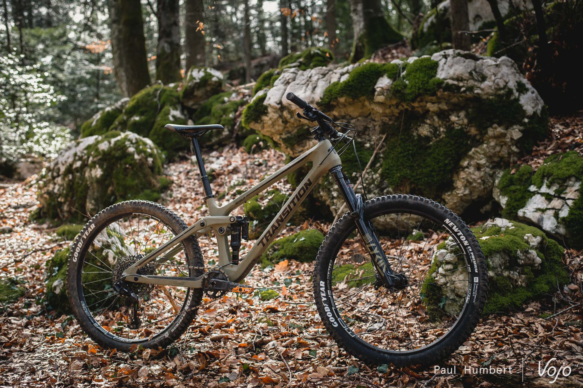 Transition recommande un sag entre 26 et 33 %, ce qui laisse une certaine marge de manœuvre. Nous choisissons de partir sur 30-31 % avec un rebond « moyen » (fermé de 5 clics derrière et de 8 devant) pour commencer et c’est parti pour les premières sorties ! Très vite, le comportement de la suspension au pédalage nous marque : en position assise, elle ne pompe pas du tout en offrant adhérence et sensibilité sur les petits chocs.. Le levier qui permet de passer en mode « pédalage » sur l’amortisseur ne sert donc que peu et nous l’avons utilisé uniquement sur route et sur de longues ascensions, pour pouvoir relancer en danseuse de temps à autre. En tout-terrain, on passe l’amortisseur en position ouverte et on n’y touche plus, il se fait oublier.