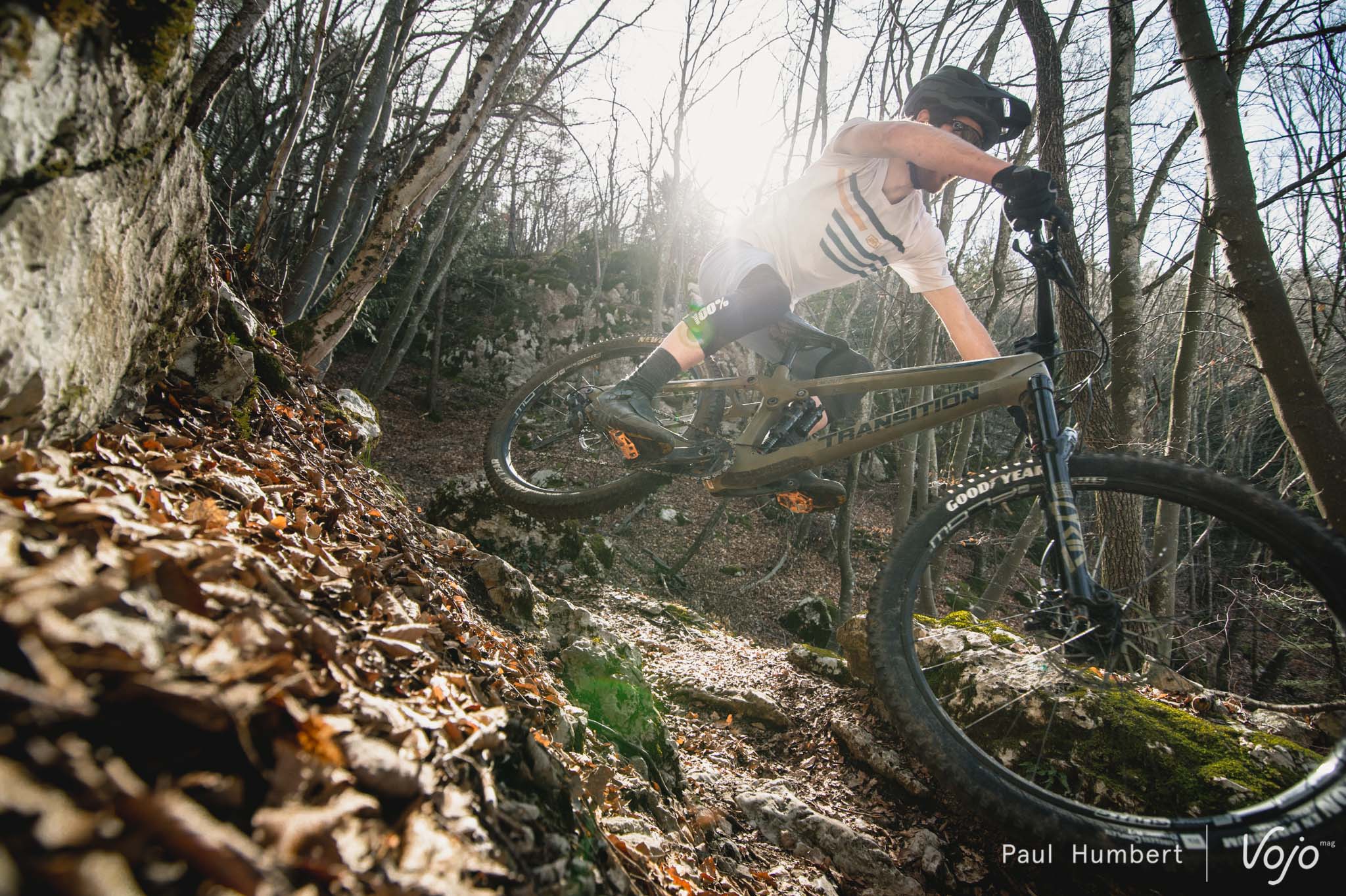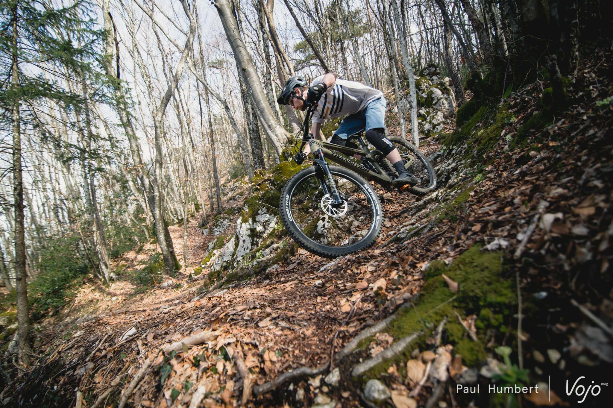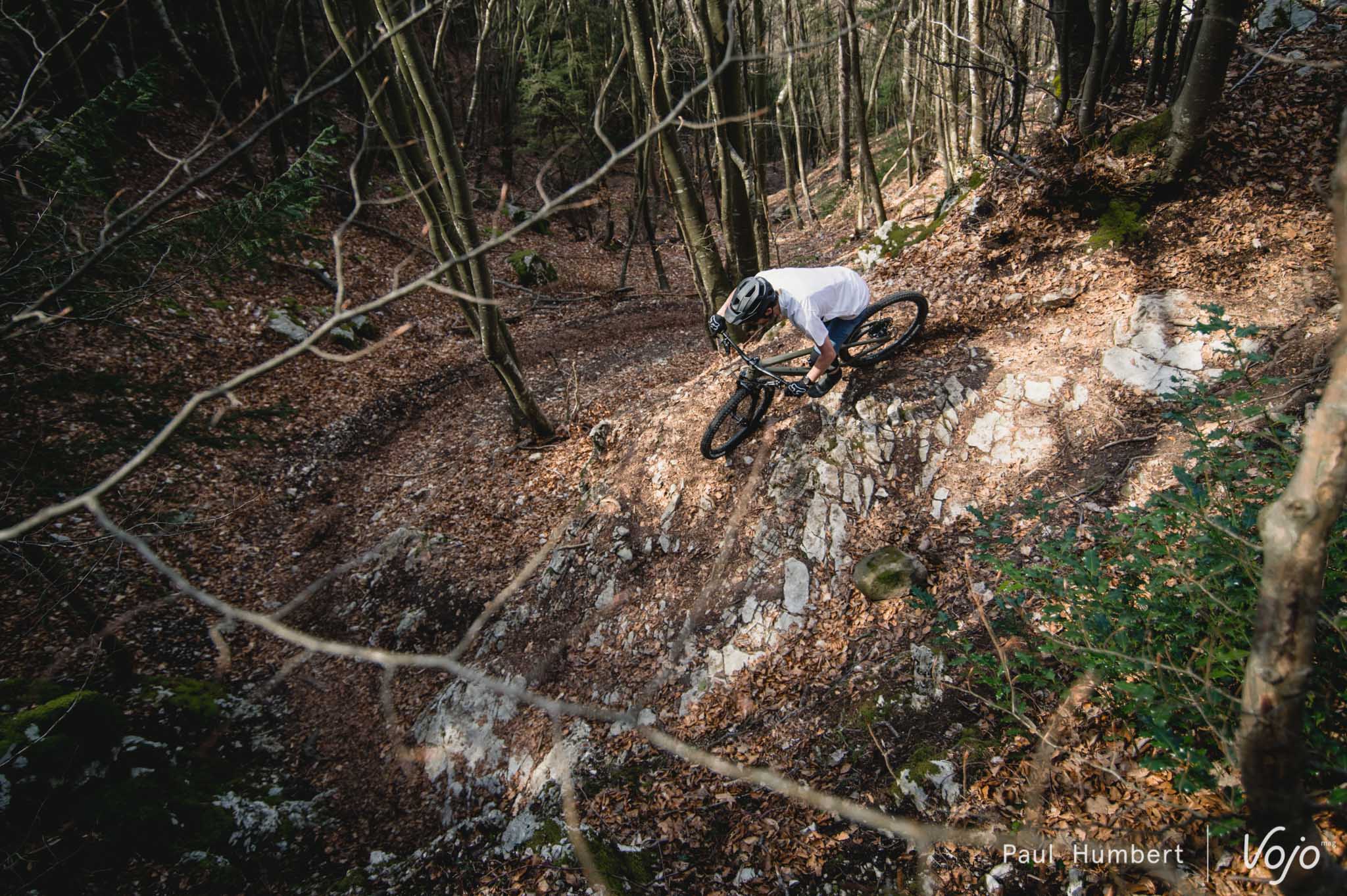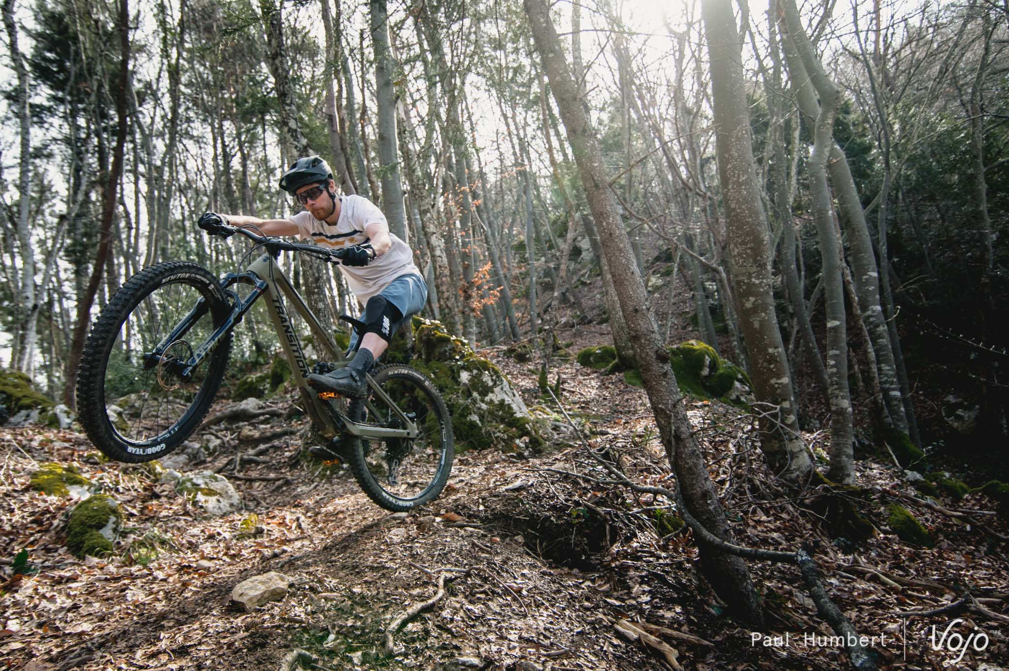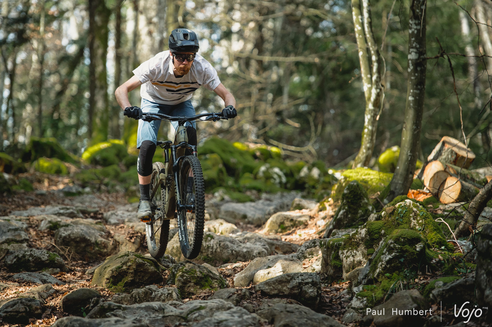 Un enduro en 27,5″, c’est très bien mais il y a déjà le Patrol pour faire ce travail chez Transition et ce n’est pas trop dans l’ADN du Scout. On décide alors d’augmenter la pression dans l’amortisseur pour passer sur 25-26 % de sag et en parallèle, on ouvre un peu le rebond sur la fourche et l’amortisseur (fermé de 3 clics derrière et de 7 devant) puis on retourne sur les chemins.