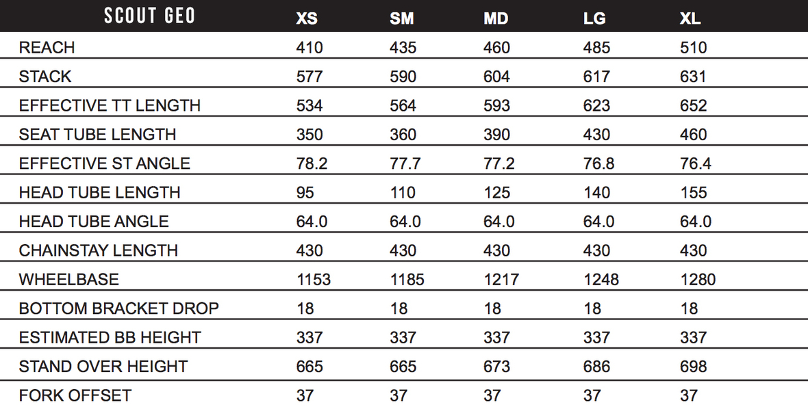 3 montages et un kit cadre sont au catalogue pour le Scout, qui est disponible dans deux coloris différents et 5 tailles. Pas d’aluminium au programme, toutes les versions sont en carbone pour l’instant :