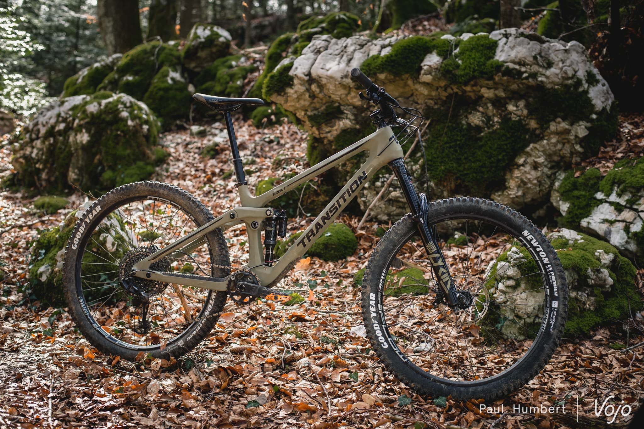 Transition recommande un sag entre 26 et 33 %, ce qui laisse une certaine marge de manœuvre. Nous choisissons de partir sur 30-31 % avec un rebond « moyen » (fermé de 5 clics derrière et de 8 devant) pour commencer et c’est parti pour les premières sorties ! Très vite, le comportement de la suspension au pédalage nous marque : en position assise, elle ne pompe pas du tout en offrant adhérence et sensibilité sur les petits chocs.. Le levier qui permet de passer en mode « pédalage » sur l’amortisseur ne sert donc que peu et nous l’avons utilisé uniquement sur route et sur de longues ascensions, pour pouvoir relancer en danseuse de temps à autre. En tout-terrain, on passe l’amortisseur en position ouverte et on n’y touche plus, il se fait oublier.