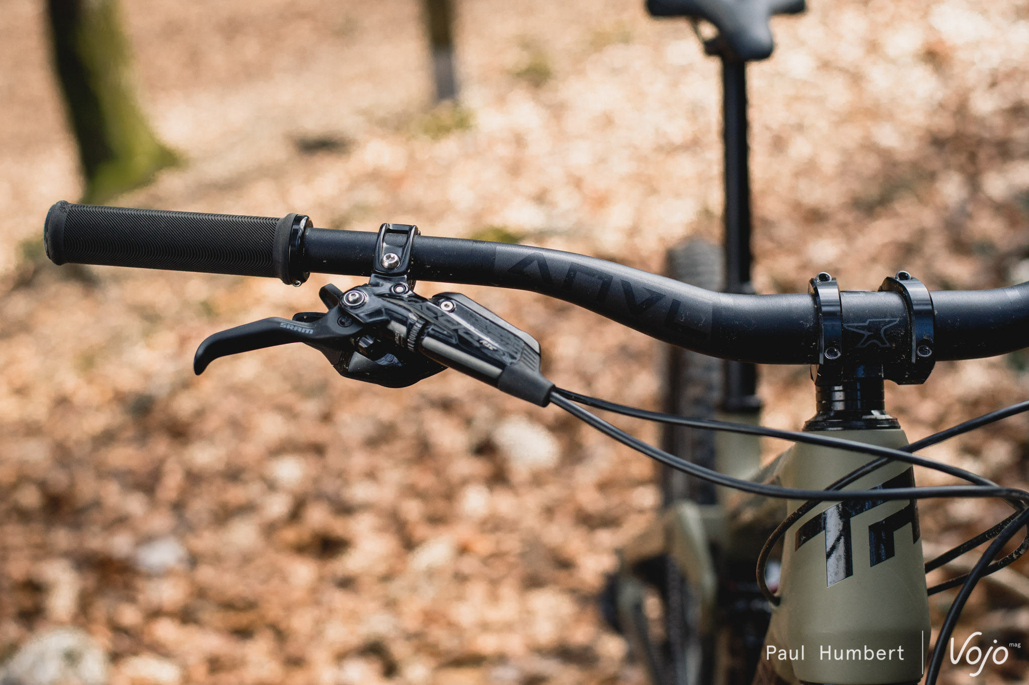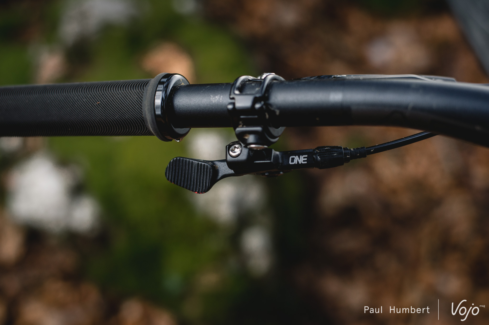 Du côté des composants qui nous ont séduits et qui renforcent la bonne impression que nous a laissée ce vélo, il faut mentionner la tige de selle OneUp V2 et les poignées Sensus Lite. La première est un modèle en terme de douceur au levier et de rapidité de fonctionnement et le grand débattement (réglable par pas de 10 mm) ne semble pas affecter sa fiabilité. Avec 525 g en 30,9 mm de diamètre et 180 mm de débattement, son poids est dans la bonne moyenne et pour ne rien gâcher, elle est plutôt abordable. Elle est en effet affichée à 209 € sans levier (compter 49 € de plus pour ce dernier), soit 100 à 200 € de moins qu’une bonne partie de la concurrence.