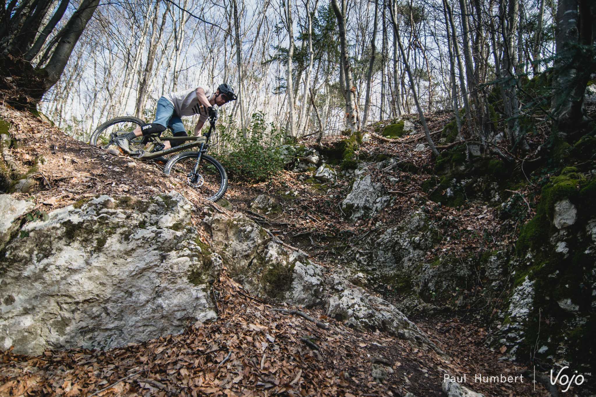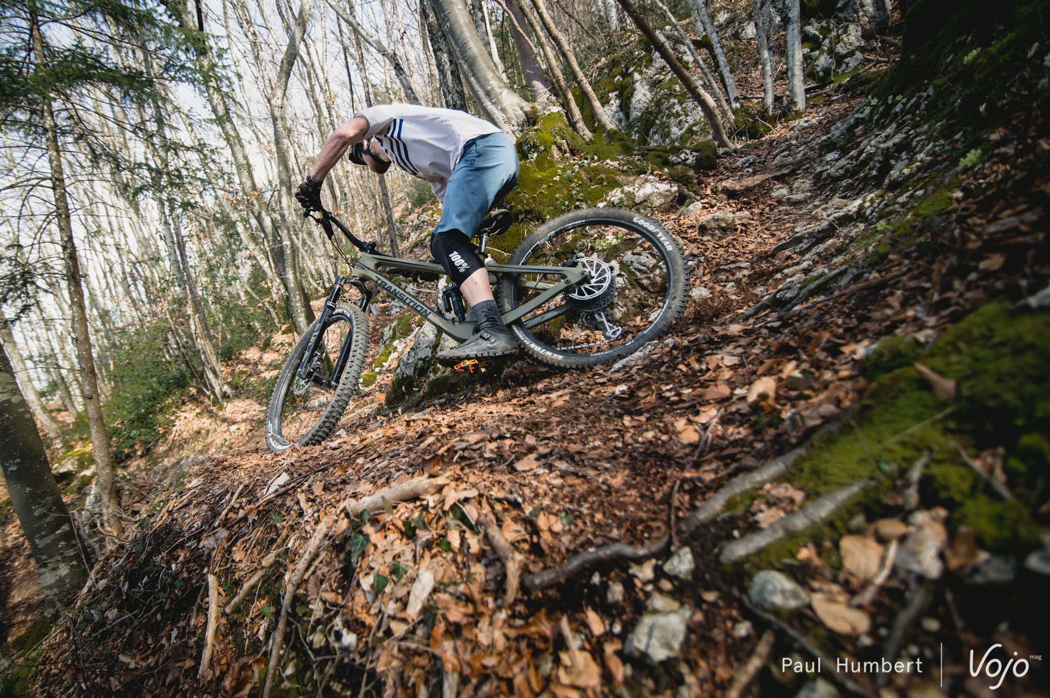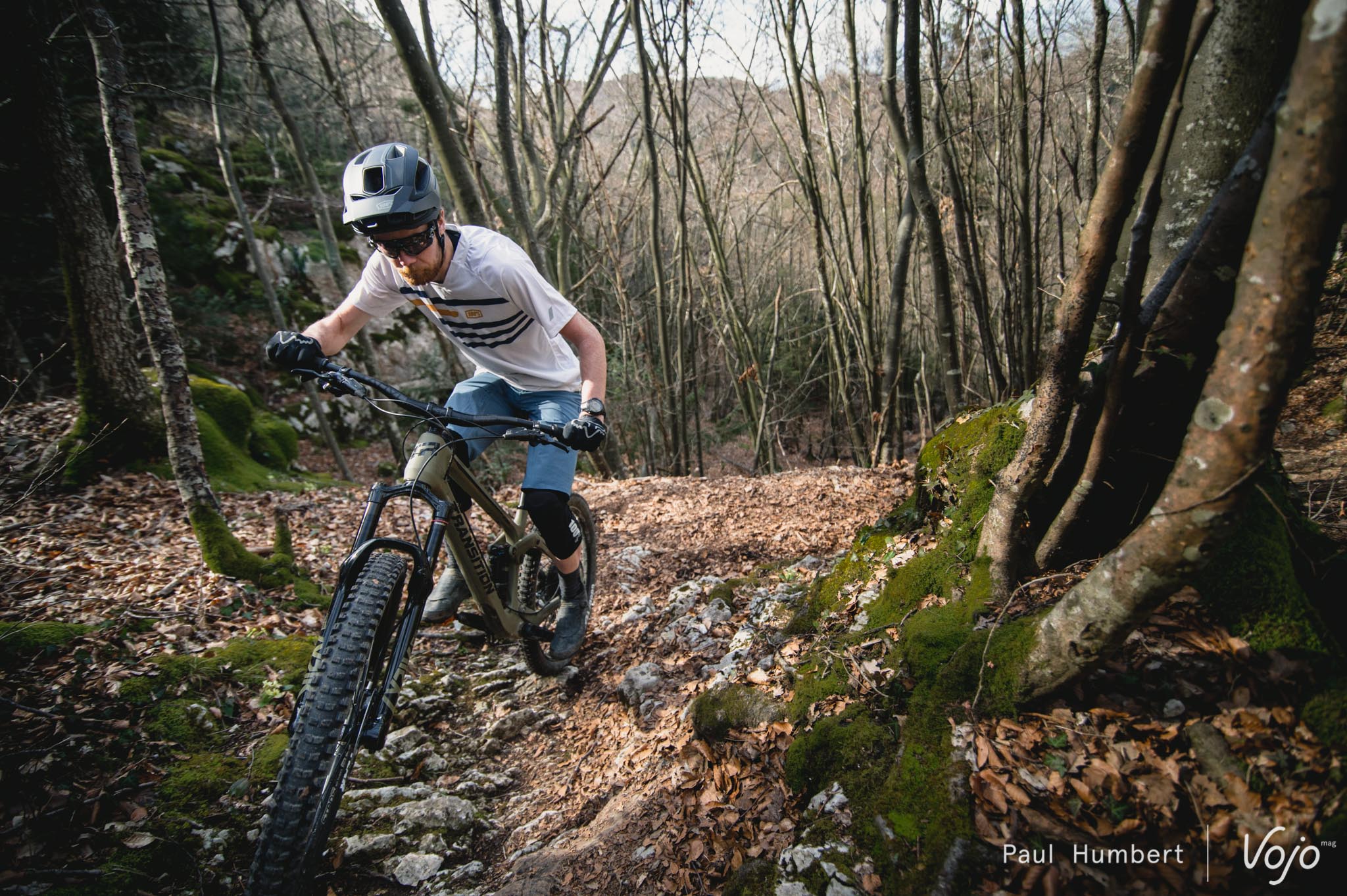 Un enduro en 27,5″, c’est très bien mais il y a déjà le Patrol pour faire ce travail chez Transition et ce n’est pas trop dans l’ADN du Scout. On décide alors d’augmenter la pression dans l’amortisseur pour passer sur 25-26 % de sag et en parallèle, on ouvre un peu le rebond sur la fourche et l’amortisseur (fermé de 3 clics derrière et de 7 devant) puis on retourne sur les chemins.