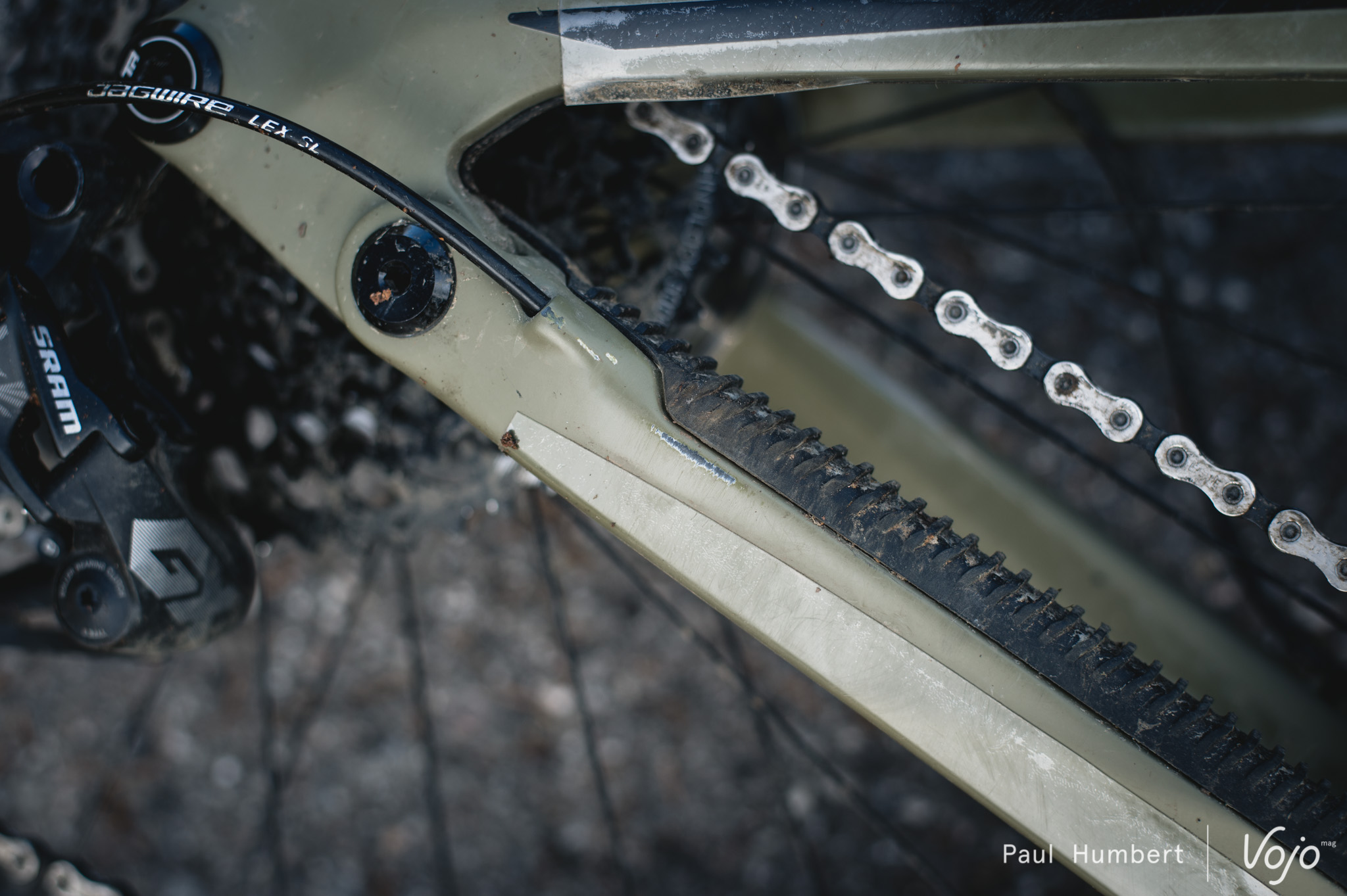 En revanche, ce comportement se paye dans le défoncé et le vélo est alors moins stable, moins efficace que notre réglage de départ lorsqu’on souhaite rouler vite. Il faut le tenir un peu plus mais on sent qu’il ne demande qu’à jouer avec le terrain et tenter de nouvelles trajectoires, quitte à rouler un peu moins vite.