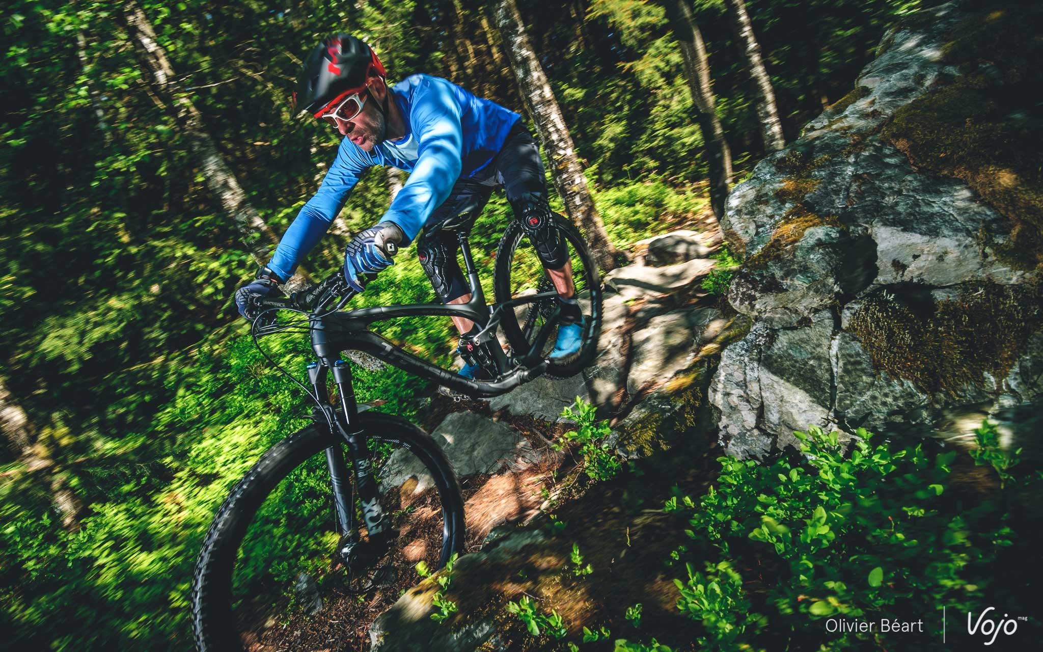 Plus que le côté fun et jouet, c’est dans l’efficacité et les vitesses de passage stratosphériques qu’on va chercher le plaisir et le côté grisant avec le Sentinel. Quand on est capable de piloter avec tout le corps et qu’on maîtrise tous les fondamentaux techniques, on parvient toujours à l’inscrire dans la trajectoire idéale pour la chasse au chrono. Et s’il y a des obstacles qui gênent sur cette trace, peu importe, on a ce qu’il faut du côté des suspensions et des roues pour ne pas trop s’en préoccuper. Autre illustration de ce caractère « réservé aux experts » de ce Transition : les sauts. Tentez un bunny-up approximatif, la suspension va vous bouffer toute l’énergie mise à le faire décoller et le bike va rester au sol. Faites-le à la perfection et il va décoller avec style et efficacité.